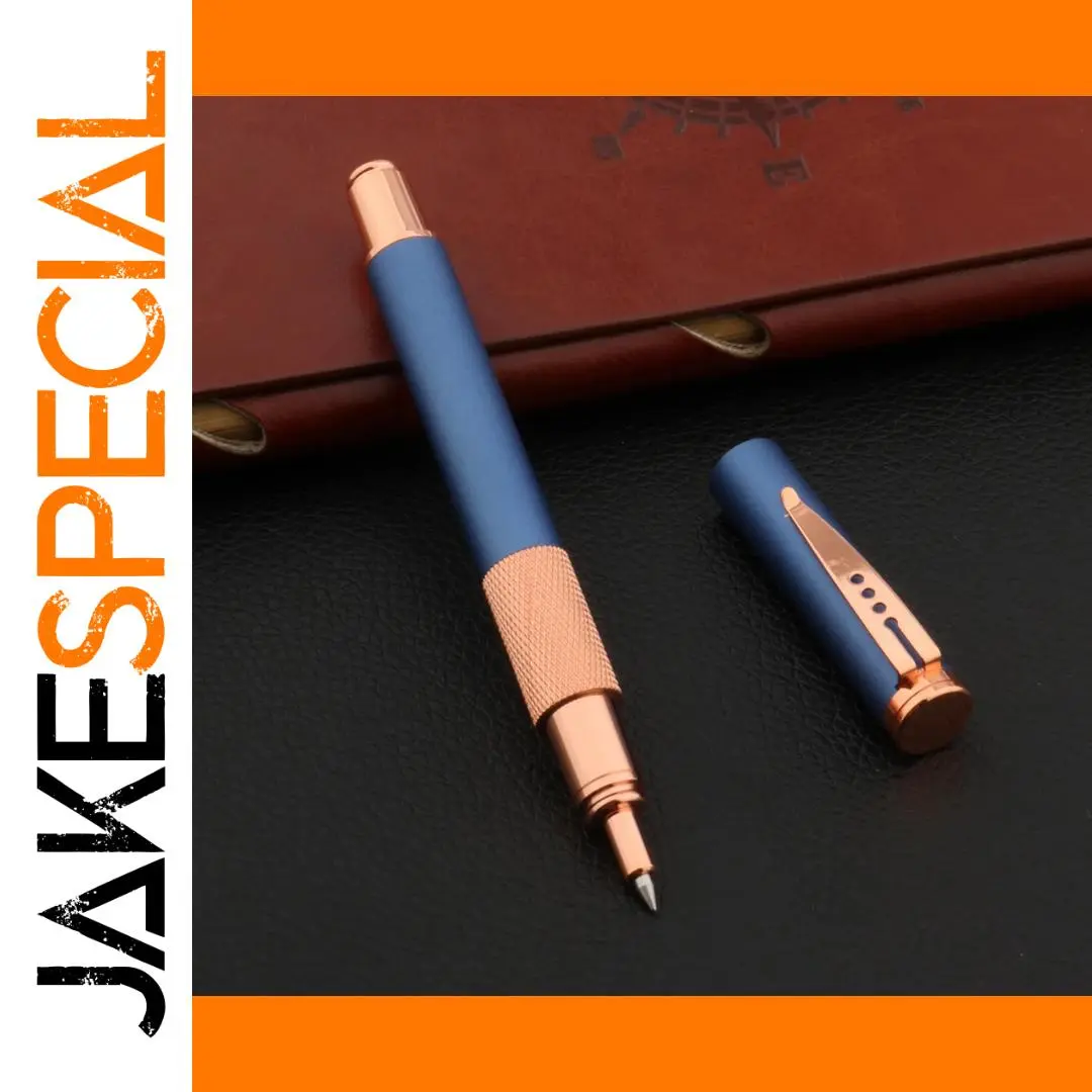 Experience the elegance and sophistication of this luxury metal frosted blue rollerball pen, perfect for elevating your writing experience. Its sleek, cylindrical design features a soft matte blue finish that exudes modern luxury. Accentuated by polished rose gold details, including a curved clip and a textured knurled decorative band around the middle, this pen combines beauty with functionality. The precise 0.5mm tip ensures detailed, smooth writing, making it ideal for professional, academic, or personal use. Its durable metal construction guarantees long-lasting performance, while the black ink flow provides clarity and precision. Whether used in a business setting or for personal projects, this pen provides a refined touch to your everyday writing. Its elegant presentation makes it a distinguished addition to any collection.