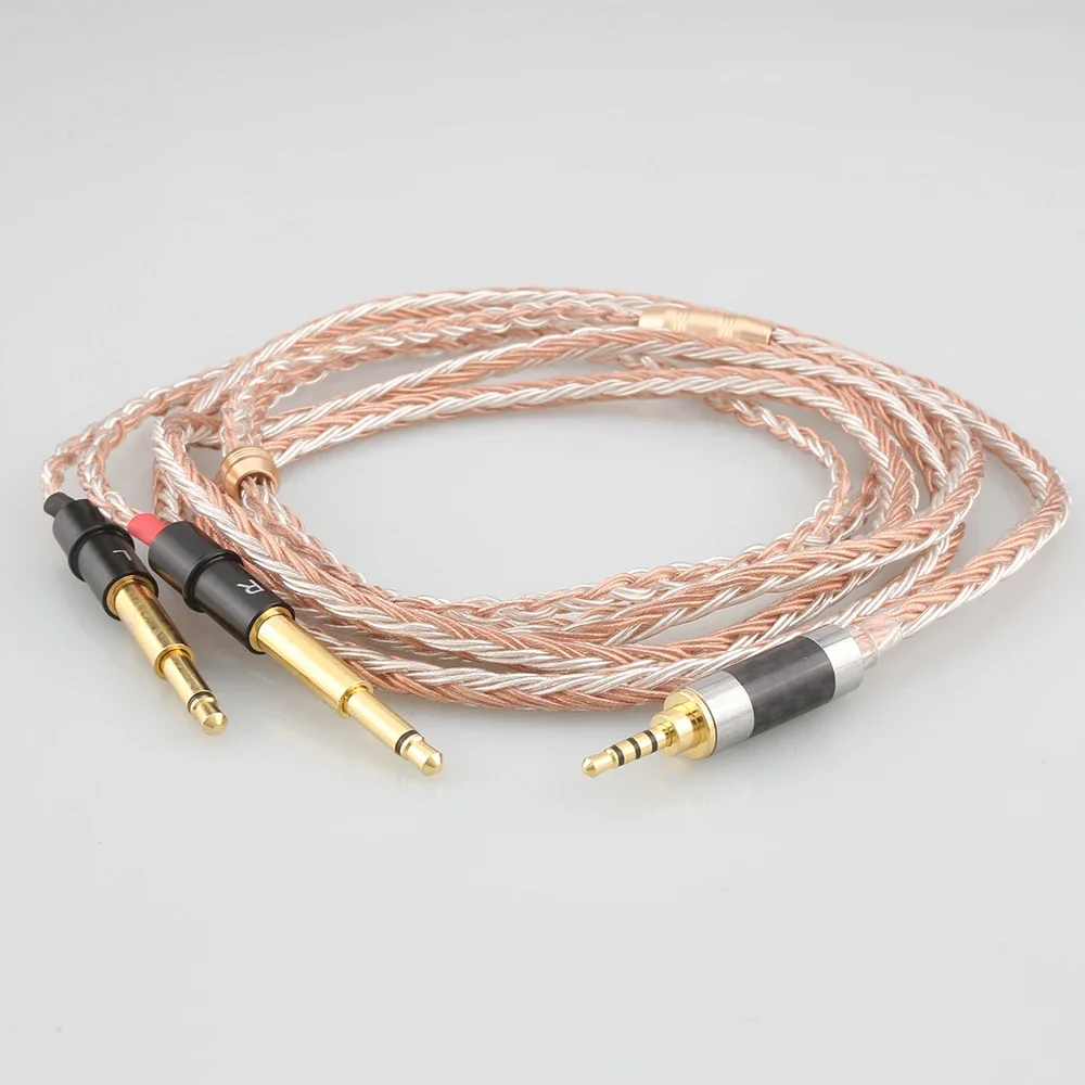 Experience premium sound with this intricately braided, multicolored earphone cable that combines elegance and durability. Crafted with high-purity 7N OCC copper and silver plating, this cable ensures excellent signal transmission and reduced distortion. Its textured, tightly braided design not only enhances aesthetic appeal but also provides resilience against wear and tear. The sophisticated blend of rose gold and silver tones offers a refined look, perfect for audiophiles who value style and performance. Thanks to its versatile connector options, including 3.5mm, 4.4mm, 6.35mm, 2.5mm TRRS, and XLR male plugs, this cable seamlessly integrates with a variety of high-end headphones and audio devices. Upgrade your listening experience with a cable that exudes craftsmanship and sophistication, reliably supporting high-quality audio across multiple setups.