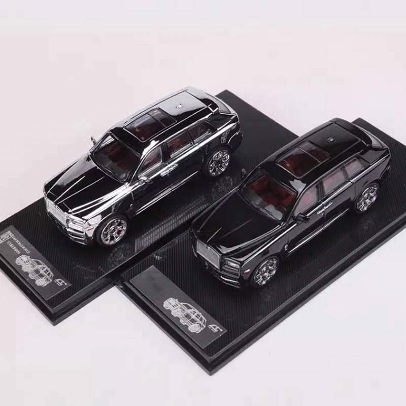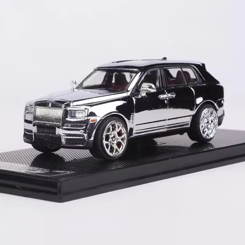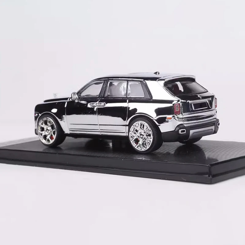 Bring the elegance of luxury SUVs into your collection with this meticulously crafted diecast model of the prestigious Cullinan. Measuring at a perfect 1:64 scale, it captures every detail of the original vehicle, from the sturdy boxy shape to the chrome accents. The shiny silver variant (Color B) highlights sophisticated chrome details on the grille, window frames, and side mirrors, giving it a sleek, metallic appeal. The glossy black version (Color A) exudes a modern and polished aesthetic, accentuated by chrome features that emphasize its premium design. Made from durable alloy, this static model is designed for display, promising to be a centerpiece in any collection. Its realistic proportions and intricate detailing make it a must-have for enthusiasts of luxury car replicas.