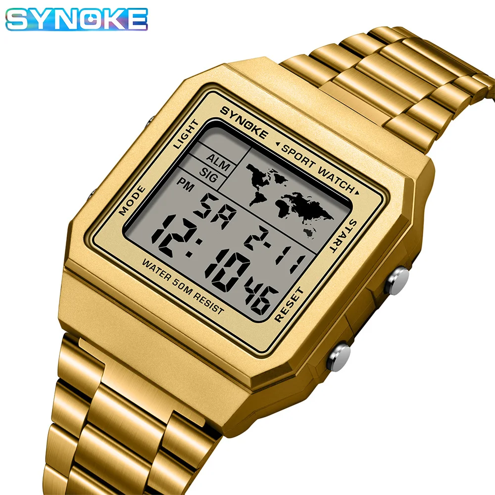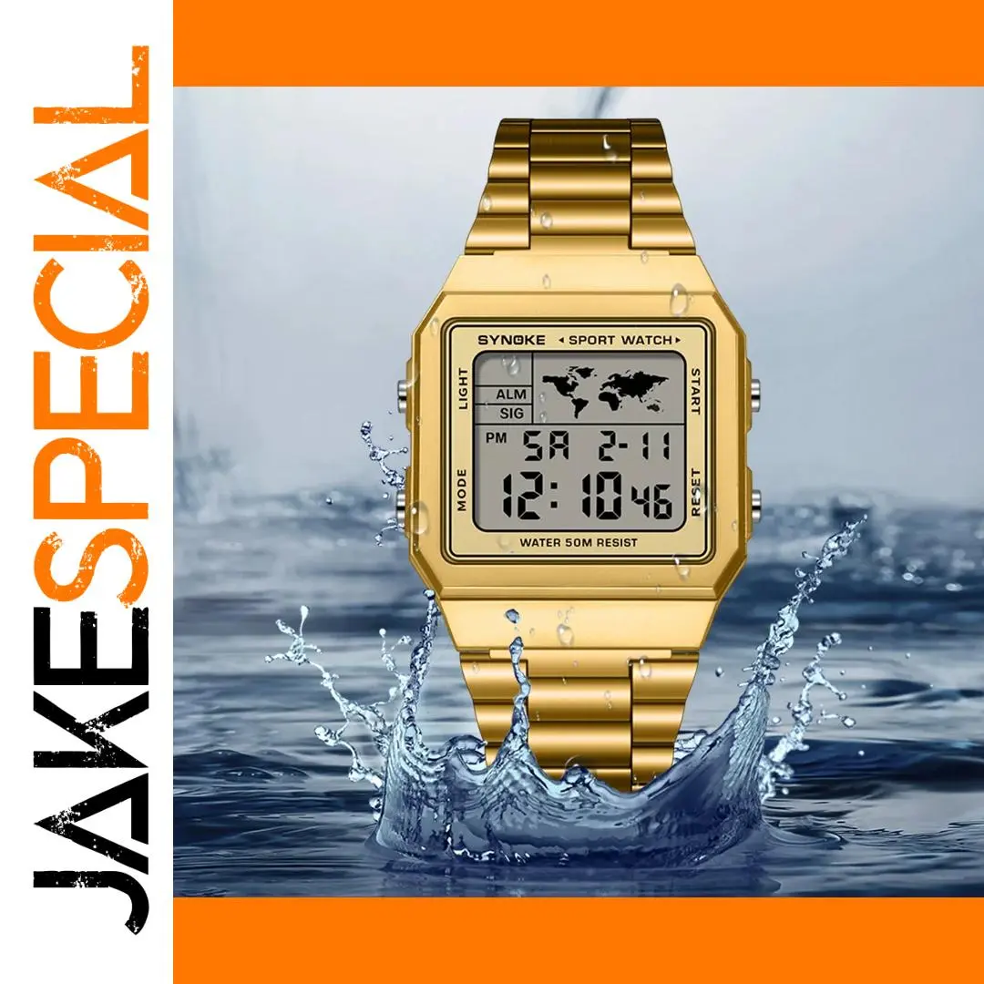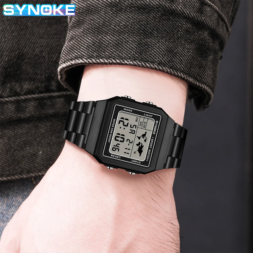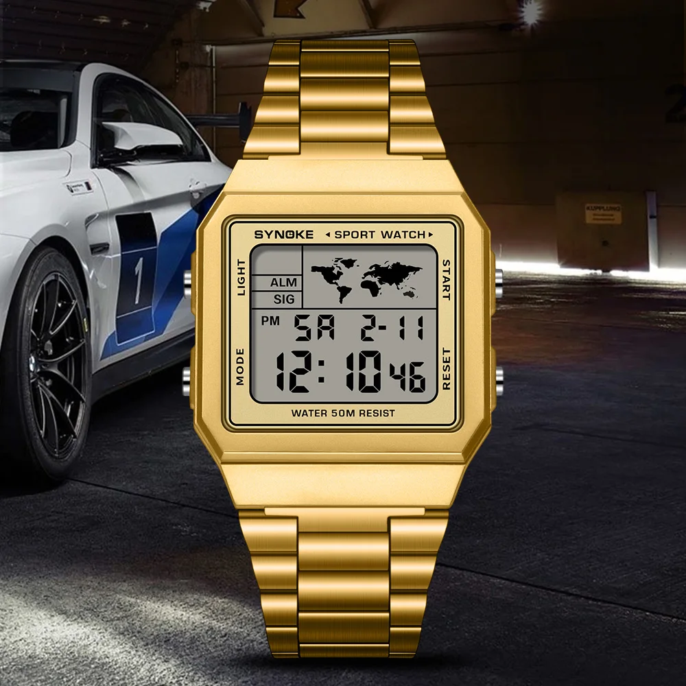 Imagine elevating your style with this sophisticated digital men's chronograph watch, model P9906. Crafted to meet the demands of the modern, active man, it combines sleek design with practical features. Its complete calendar, alarm, and week display make it an essential tool for staying punctual, while its shock-resistant construction offers durability during everyday activities or intense workouts. The backlight ensures visibility at any time of day or night, whether at the gym or out for a casual evening. Made from high-quality stainless steel and lightweight materials, this watch offers comfort without sacrificing resilience. Waterproof up to 5 bar, it’s perfect for swimming, running, or outdoor adventures. Own this watch today to enjoy a blend of functionality and style in every moment you wear it.