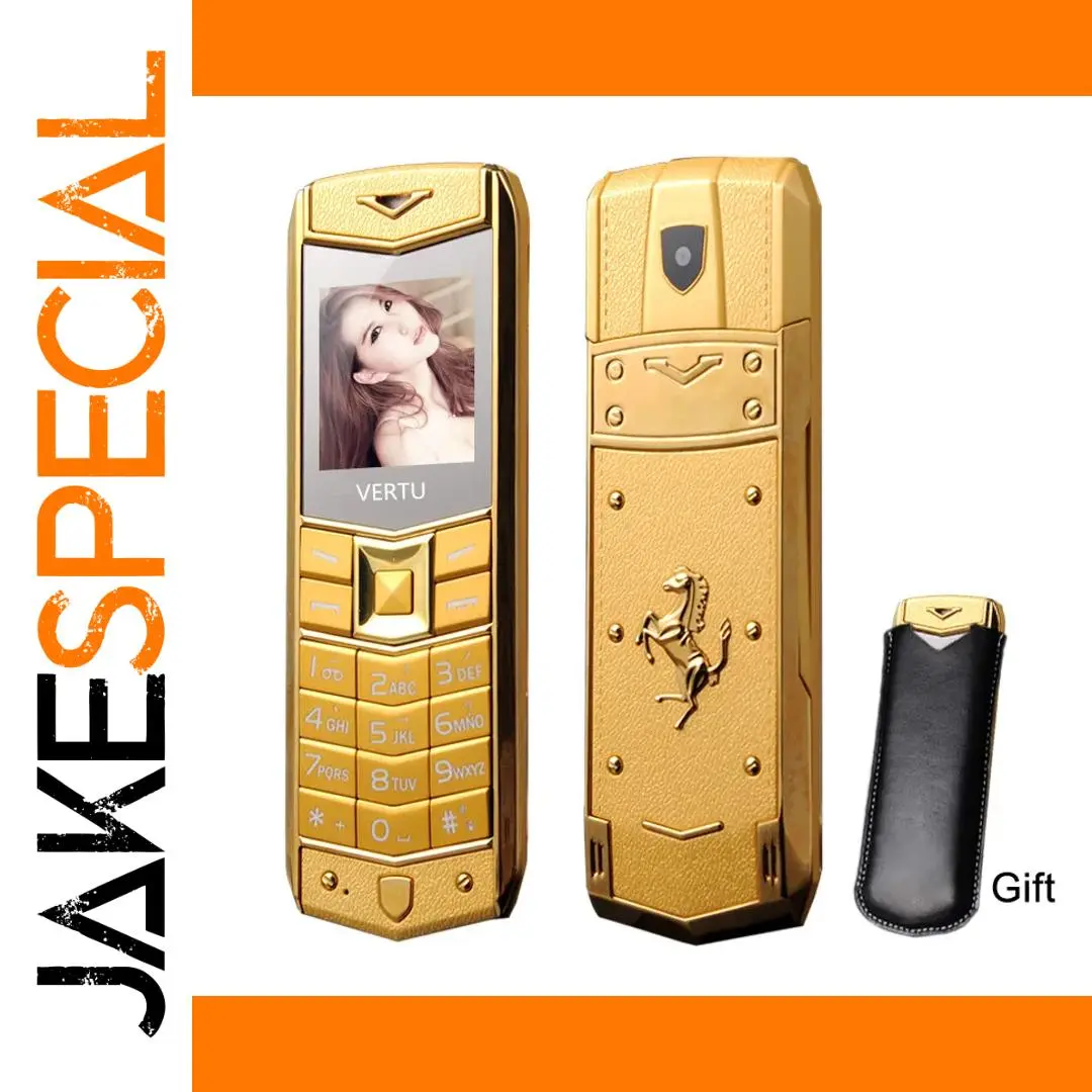 Introducing the A8 luxury mobile phone, featuring a stunning gold design and a compact form factor measuring 118 x 41.5 x 7.5 mm. Equipped with a 1.8-inch LCD display (240×320 resolution) and a detachable 1600mAh battery, this device operates on a 2G network (GSM850/900/1800/1900MHz) and supports dual SIMs (1 normal, 1 micro). With 32MB RAM and 32MB ROM, expandable up to 8GB, it offers functionality for FM Radio, MP3 playback, and Bluetooth connectivity. The mobile comes with a sleek protective case and earphones, embodying sophistication and practicality for everyday use.