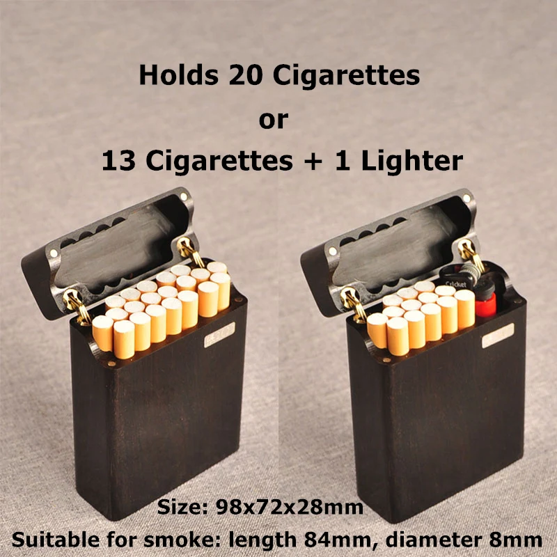 Imagine holding this beautifully crafted handmade cigarette case, designed to elevate your smoking experience with luxury and practicality. Made from rich ebony, East African ebony, rosewood, or silkwood, the case showcases a natural, eco-friendly finish that highlights the fine grain pattern. Its smooth, frosted surface offers a subtly matte aesthetic, accented with shimmering silver flake inlays for an added touch of elegance. With a sturdy metallic hinge, it opens effortlessly to reveal a soft, dark felt lining that securely holds up to 20 cigarettes—be they coarse, medium, or fine. Compact and lightweight, this case easily slips into your pocket, making it perfect for discreet storage and transport of your favorite smokes, lighters, or cigarette holders.