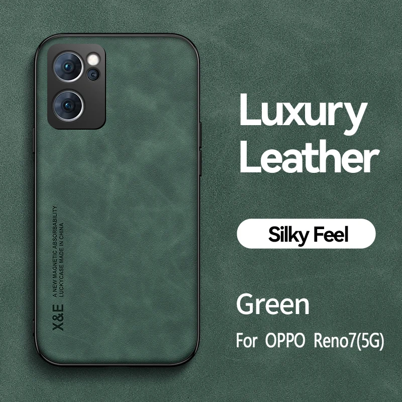 Experience the perfect blend of style and functionality with this luxury leather phone case designed specifically for OPPO models like Reno 7, 6, 5 Lite, 5F, 5Z, 5K, 3, 2Z, Pro, Plus, and Reno 7 4G/5G. Crafted from high-quality plastic with a sleek matte finish, this case offers a sophisticated look while providing durable protection. Its minimalist design features smooth, curved edges and a semi-opaque surface, emphasizing luxury and modernity. The embedded metal plate support enhances convenience for magnetic car mounts, making your daily commutes seamless. Available in elegant colors such as green, blue, dark grey, and light grey, this case is engineered for both style and practicality, giving your phone a refined, contemporary appeal.
