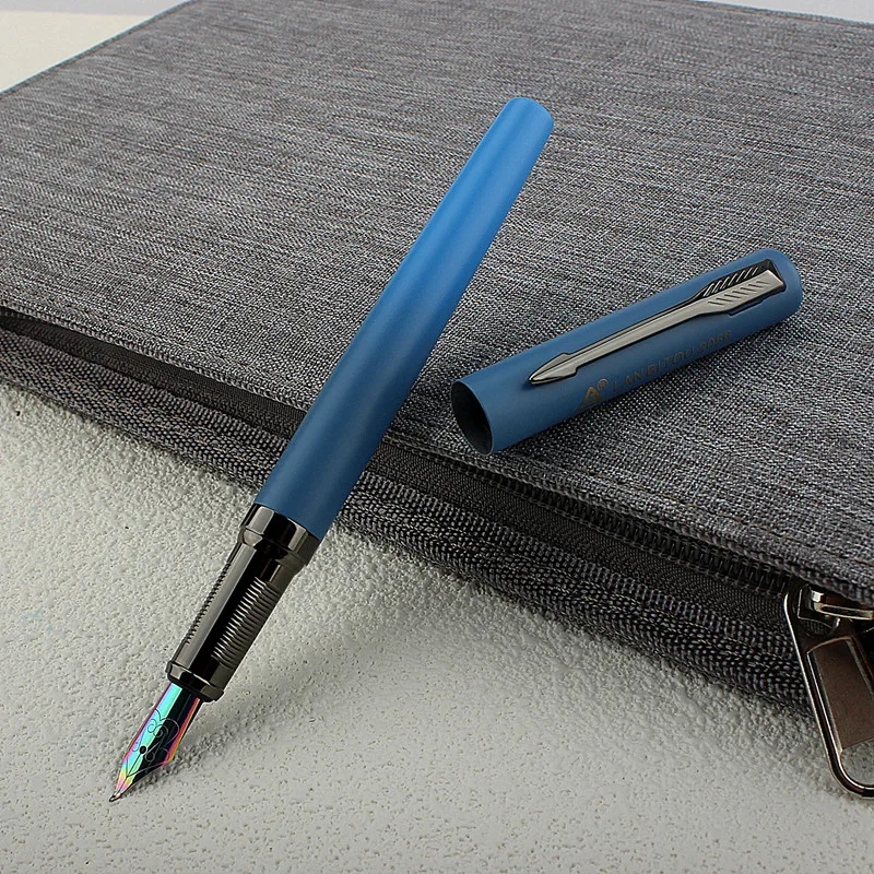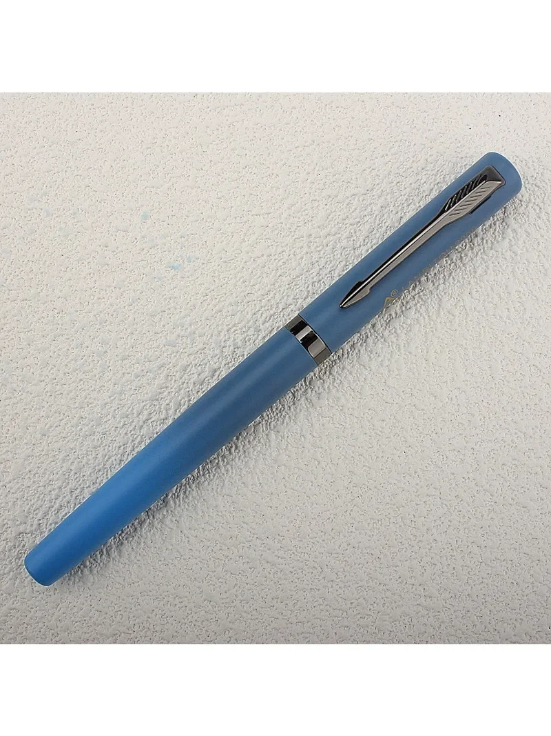 Imagine experiencing smooth, precise writing with this beautifully crafted luxury fountain pen. Its minimalist, sleek cylindrical design features a vibrant matte blue finish that commands attention and exudes professionalism. The stainless steel nib, with a fine 0.5mm tip, offers exceptional control for detailed notes, signatures, or creative sketches. The metallic accents, including a subtly curved silver clip, add a touch of sophistication and durability. Perfect for business, office tasks, or personal use, this pen combines modern style with high-quality materials for a luxurious feel. Its lightweight yet sturdy construction ensures comfortable, long-lasting performance, making your writing moments more inspiring and refined.