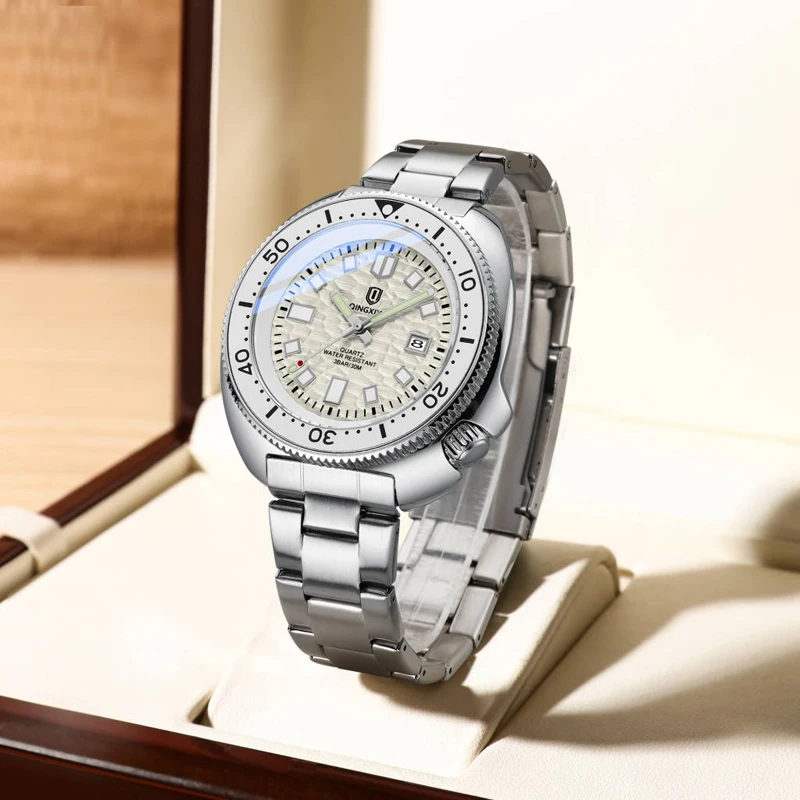 - Luminous Dial: Textured silver surface with luminescent markers enhances visibility in low-light conditions.
