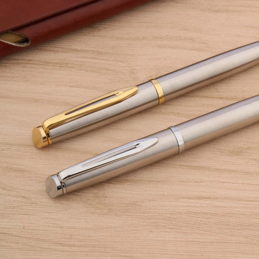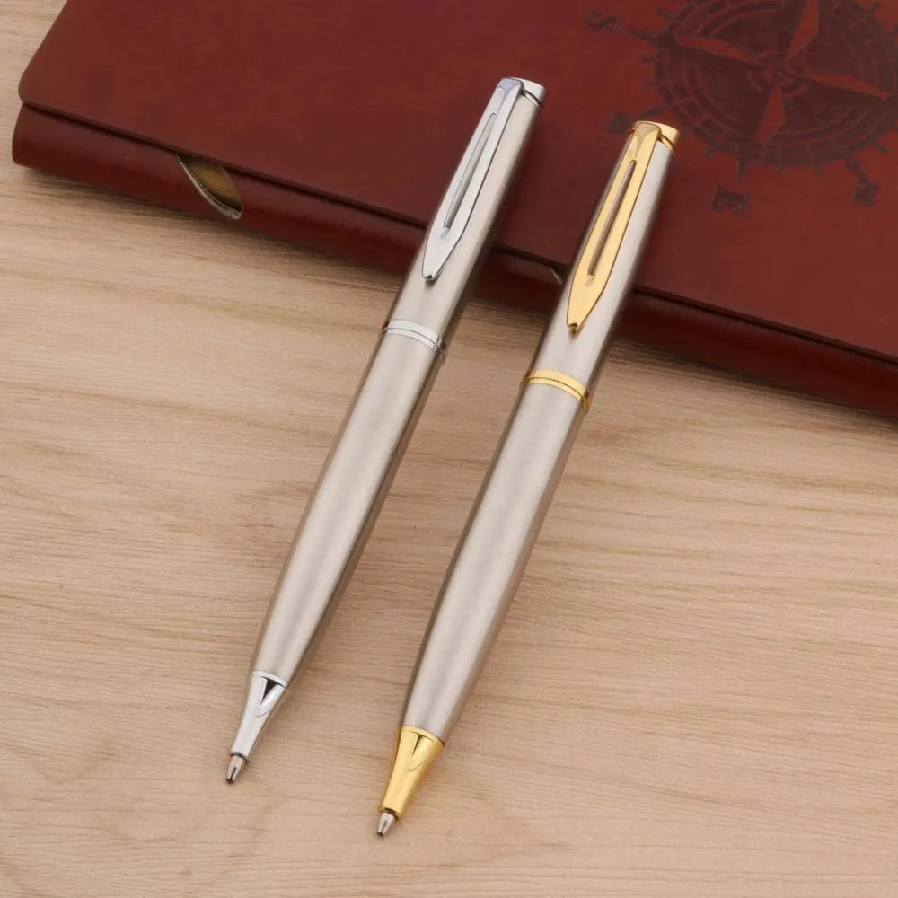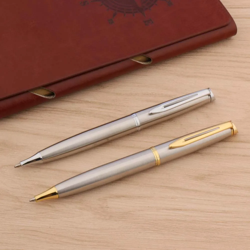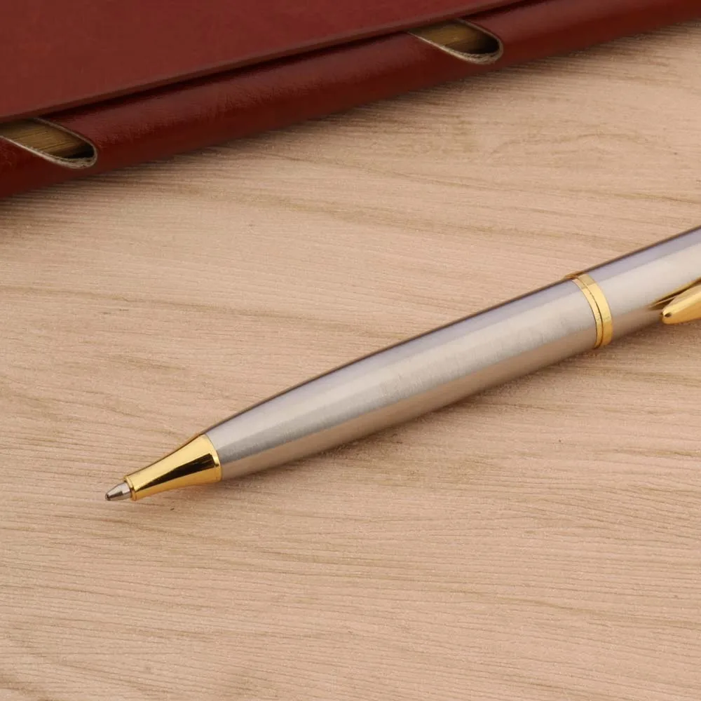 Experience the sophistication and reliability of this luxury metal ballpoint pen, perfect for enhancing your daily writing experience. Crafted with a durable stainless steel body, it features either a sleek silver finish or a refined stainless steel with opulent gold trim, adding a touch of elegance to your workspace. With a smooth 0.7mm writing point, it effortlessly glides across paper, supporting ink colors in blue, black, and red. Designed for both office and school environments, this pen combines style with functionality. Its minimalist and polished appearance makes it suitable for gift-giving or personal use, ensuring a confident, professional impression every time you write. Invest in quality that lasts, and enjoy an exceptional writing experience with this high-end accessory.