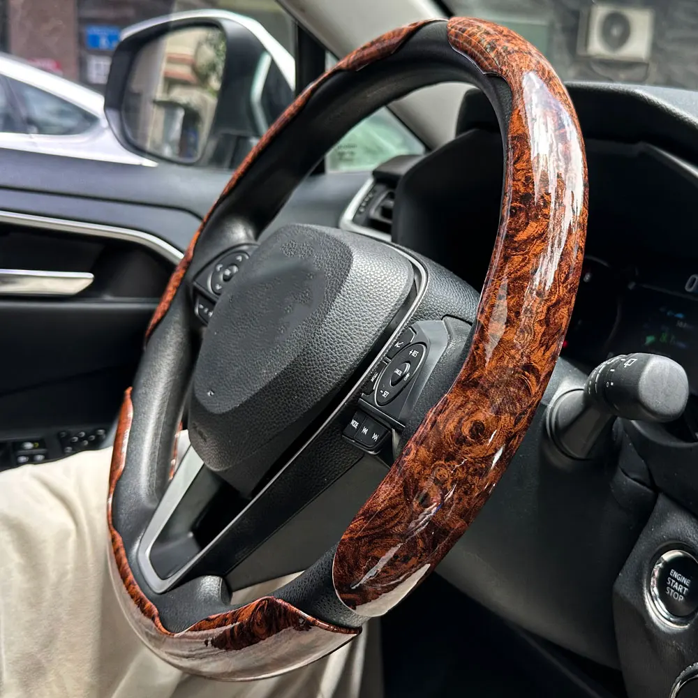 Luxury Wood Grain Steering Wheel Cover for Cars