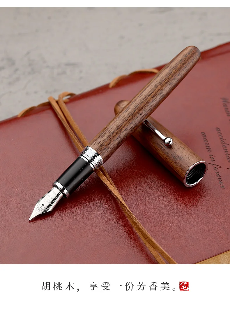 Experience the elegance and craftsmanship of this high-quality luxury wooden fountain pen, designed to inspire your writing. Its smooth, cylindrical body made of polished high-grade wood showcases beautiful natural grain patterns in warm brown tones, radiating sophistication. The sleek, stainless steel nib—available in fine 0.5mm or bent 1.0mm options—provides precise, fluid ink flow perfect for calligraphy, note-taking, or professional correspondence. The shiny metallic clip on the cap adds a touch of modern refinement, while the dark section between the nib and body ensures durability and smoothness during use. Whether you’re enhancing your writing experience or finding a refined gift, this pen exudes timeless elegance and exceptional craftsmanship, elevating every stroke.