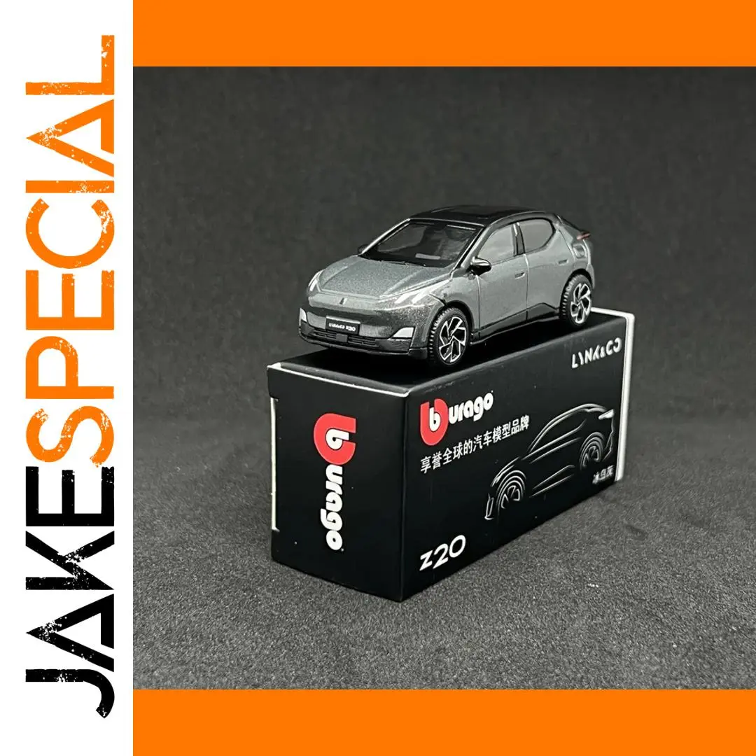 Experience the sleek, modern design of this detailed diecast model of the Lynk & Co 02 Z20 SUV, crafted by Bburago. This 1:64 scale replica captures every aspect of the real vehicle, from its glossy grey finish to its sporty proportions. The model features a sculpted hood with a raised center, sharply designed headlights, and a detailed front grille with horizontal slats and a prominent badge. Its side profile reveals flared wheel arches, multi-spoke rims, and transparent windows showing intricate interior details. The rear includes a subtle spoiler and styled tail lights, while exterior elements like door handles and side mirrors add realism. Perfect for collectors and car enthusiasts alike, this miniature blends precision with aesthetic appeal.
