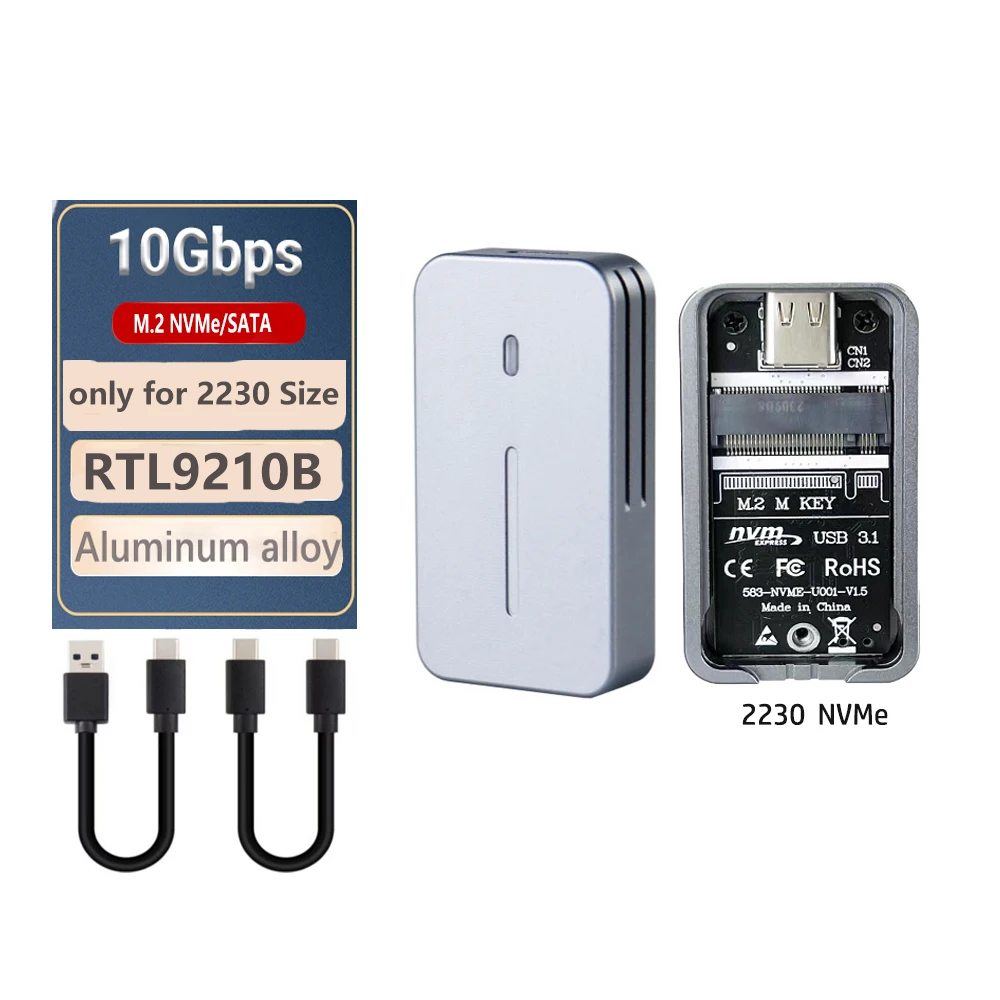 Experience efficient storage with this sleek, modern M.2 NVMe enclosure designed for ultimate portability and speed. Crafted from CNC aluminum alloy, it offers excellent heat dissipation, ensuring your SSD stays cool during intensive use. Its slim profile measures just 52mm by 28mm by 10mm, making it perfect for travel or daily use. Supporting NVMe PCIe M.2 (B+M Key/M Key) SSDs in 2230 and 2242 sizes, it can handle drives up to 4TB. The enclosure supports data transfer speeds of up to 10Gbps via USB 3.1 Gen 2 through a durable Type-C interface, with included cables for maximum convenience. Its thoughtful design combines high-tech function with a contemporary aesthetic, perfect for professionals and enthusiasts alike.