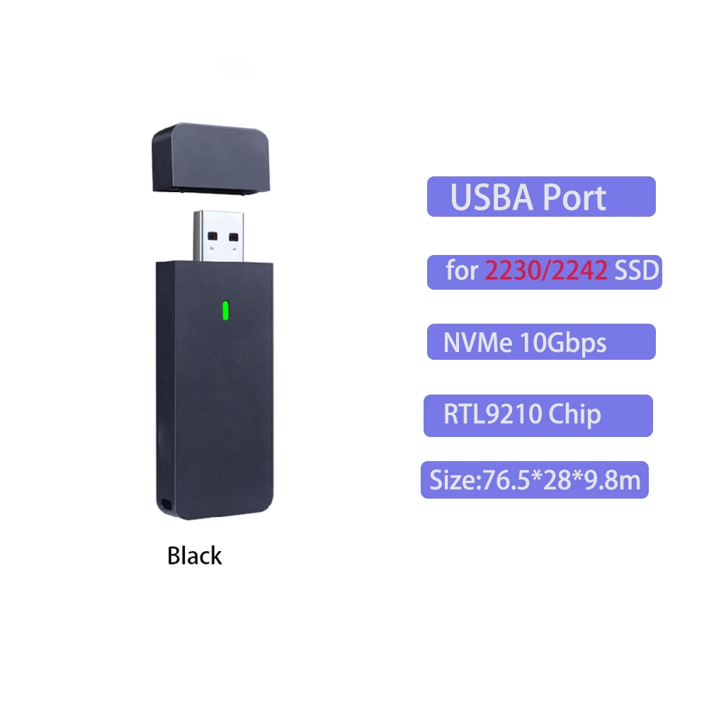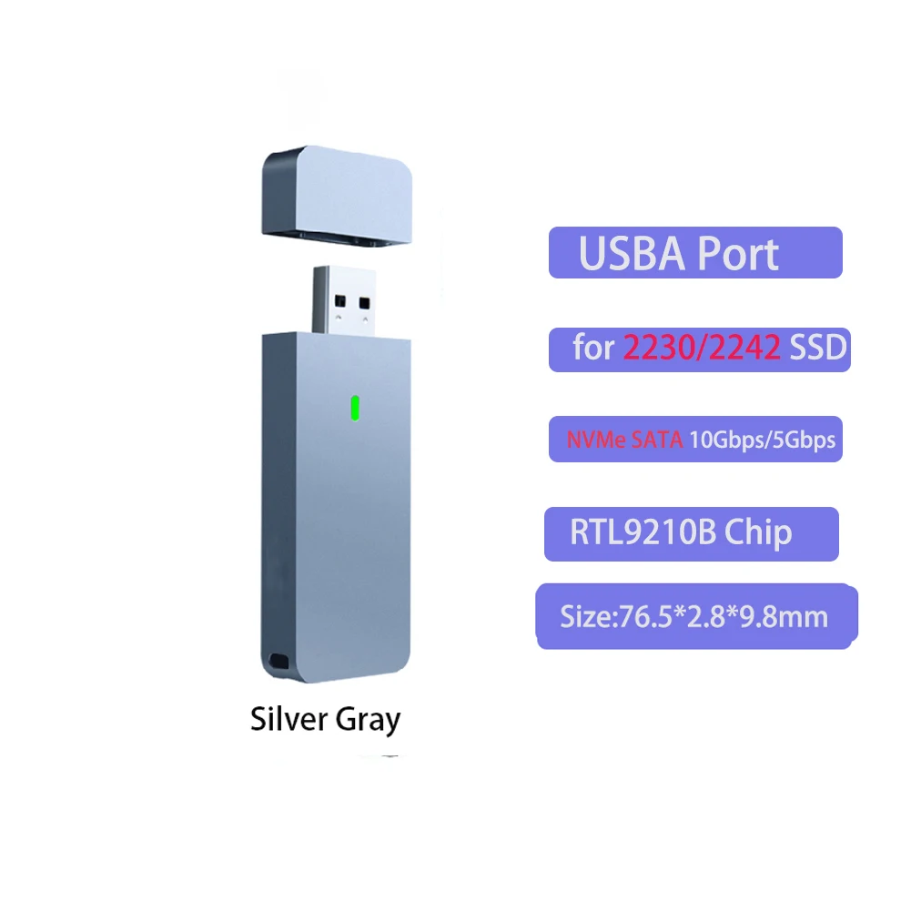 Imagine effortlessly expanding your storage with the this high-quality M.2 NVMe 2230/2242 enclosure. Crafted from durable CNC aluminum alloy, it not only promises excellent heat dissipation but also a stylish, modern look in black or metallic gray. The slim, rectangular design with rounded edges makes it incredibly portable, fitting seamlessly into your tech setup. Easy to install, it supports both NVMe and SATA SSDs up to 4TB, perfect for quick data access and backup. With a robust USB A interface supporting up to 10Gbps transfer speeds, you'll experience seamless performance whether working on PC or Mac. This enclosure combines practicality with elegance, making it a trusted addition to your high-performance storage needs.