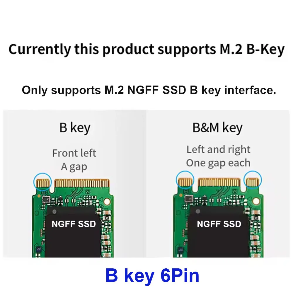 - Supports B+M key M.2 SATA NGFF SSDs with lengths of 22*30mm, 22*42mm, 22*60mm, and 22*80mm, offering broad compatibility for various SSD models and configurations.