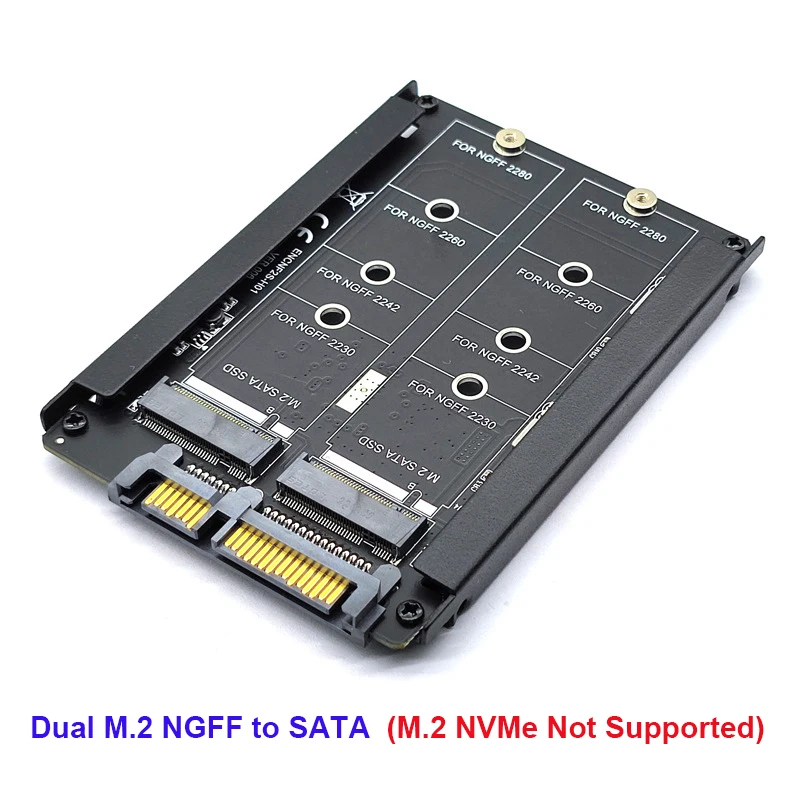 - Offers two model options: a dual M.2 to SATA adapter that supports JBOD, and a single M.2 to SATA adapter with a high-capacity smoothing capacitor, low power consumption, and fast read speeds—2 to 5 times faster than HDDs.