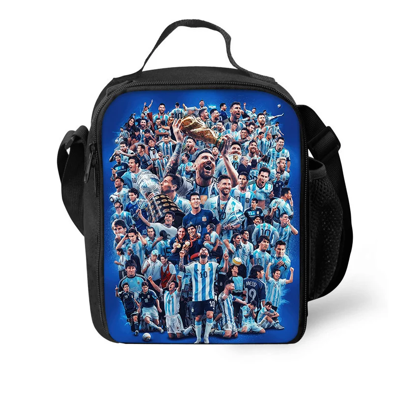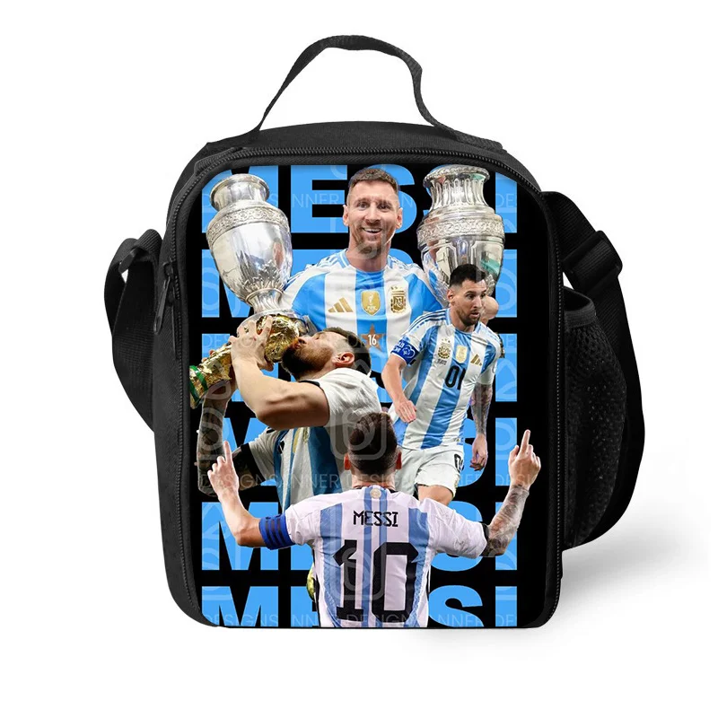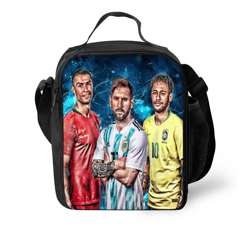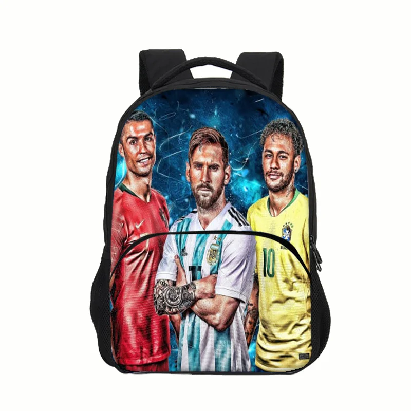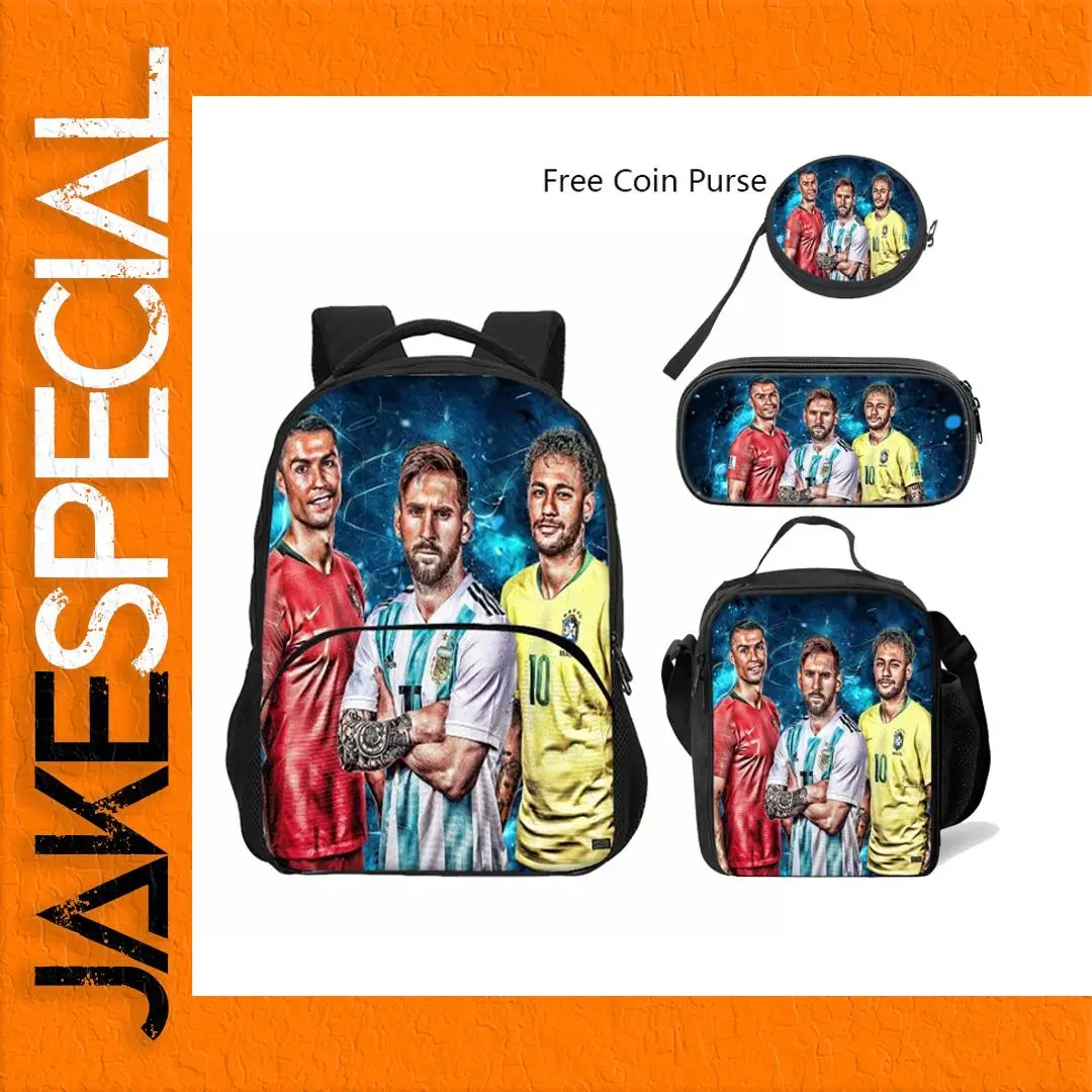 Imagine yourself confidently walking through school or on your travels with this striking M-Messi Backpack. This high-capacity design is perfect for students and adventurers alike. The main material is durable nylon, specifically made from oxford fabric which guarantees longevity and resistance against wear and tear. A vibrant and colorful graphic showcasing football legends Cristiano Ronaldo, Lionel Messi, and Neymar Jr. adds a dynamic look. With spacious compartments and thick, padded straps, this unisex backpack ensures both functionality and comfort. Paired with a matching pencil case and round coin purse, you’ll carry your essentials in style.