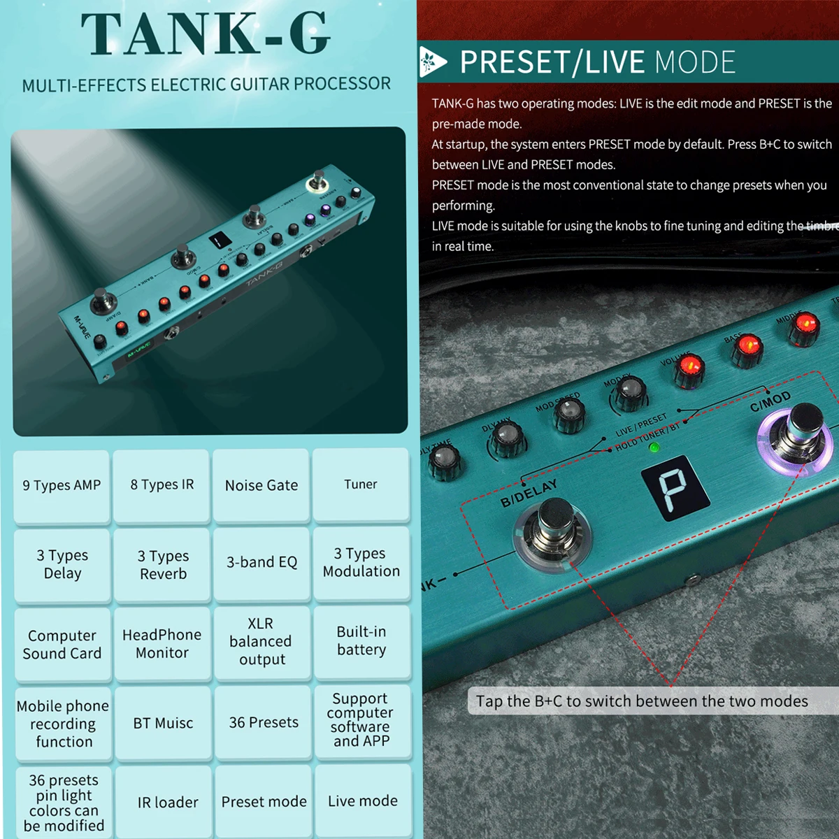 Keys features of the this M-VAVE Tank-G guitar pedal