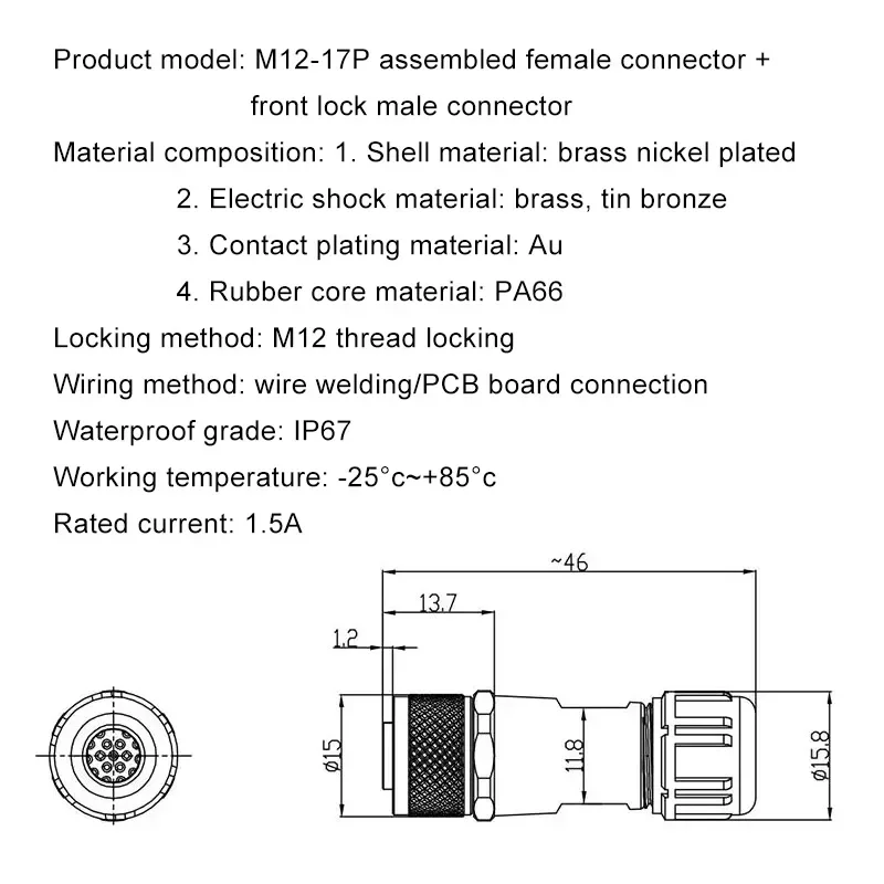 Enhance the durability and reliability of your electrical and data connections with this expertly designed M12-17Pin circular connector. Its robust construction, waterproof features, and high-quality materials enable seamless performance in industrial, automation, and outdoor applications. Whether you need secure communication in challenging environments or dependable power connections, this connector is an ideal choice. Its technical specifications support rugged use, and versatile wiring options simplify installation. Invest in this exceptional connector today to ensure long-lasting, stable, and safe electrical connections in your most demanding projects.