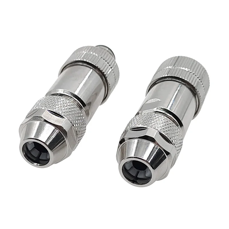 Experience seamless signal transmission with this premium M12 sensor connector from CNMAWAY. Crafted with a durable, shielded metal housing, this connector boasts a shiny, chrome-like finish that combines industrial robustness with a sleek, modern look. Its knurled grip ensures secure handling during installation, while the threaded coupling provides a firm, shielded connection. Designed for versatility, it offers various configurations including straight and angled types, with 4, 5, or 8 pins, making it ideal for numerous sensing and automation setups. Whether you need a female or male connector, this component guarantees high performance and reliable operation in demanding industrial environments. Perfectly suited for ensuring stable signal transmission at 24V systems, it promises longevity and precision in your automation projects.