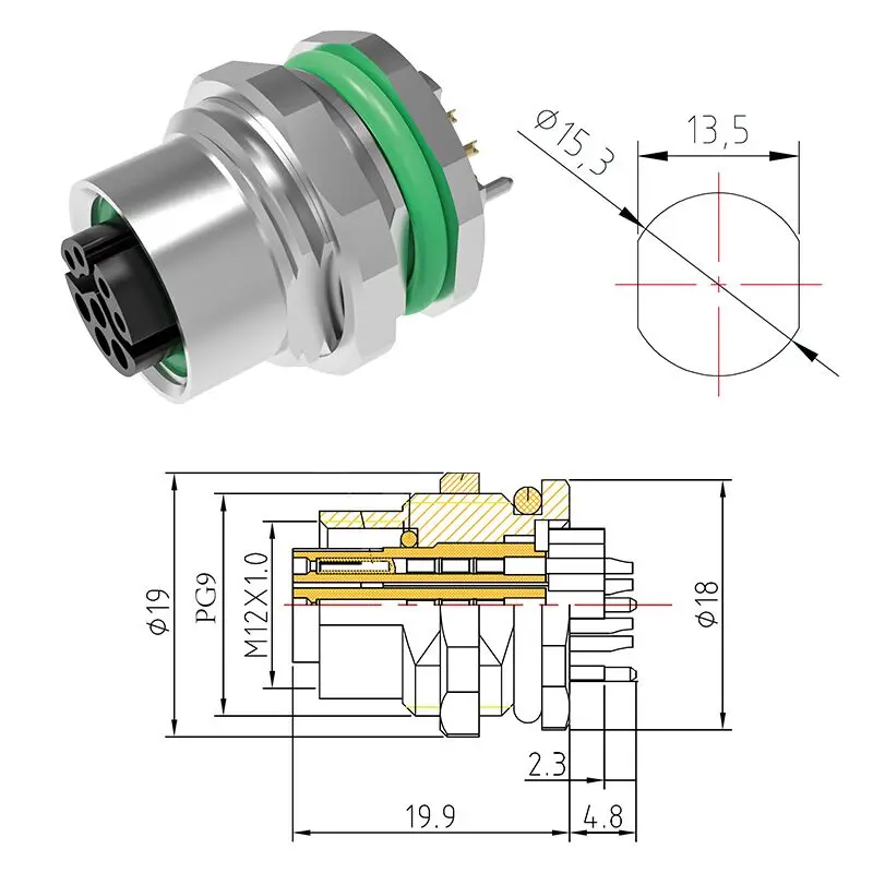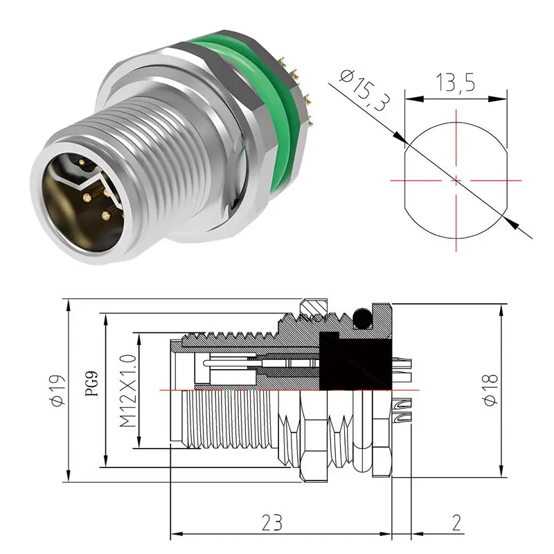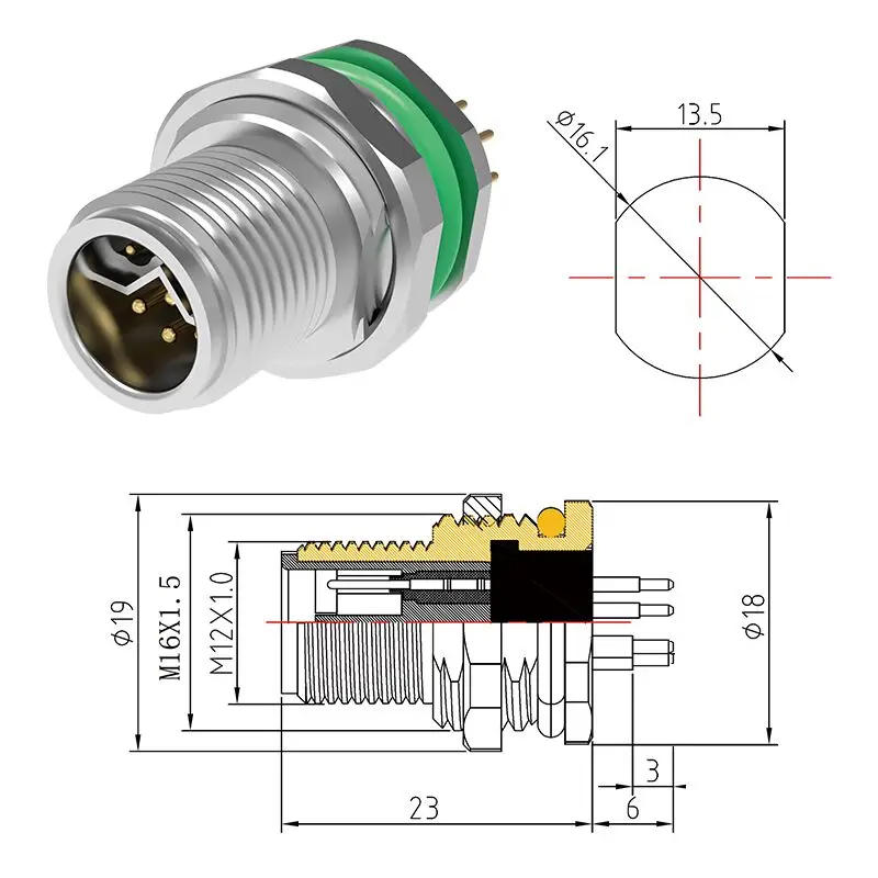 M12 Y-Coding 8-Pin Connector for Industrial Use