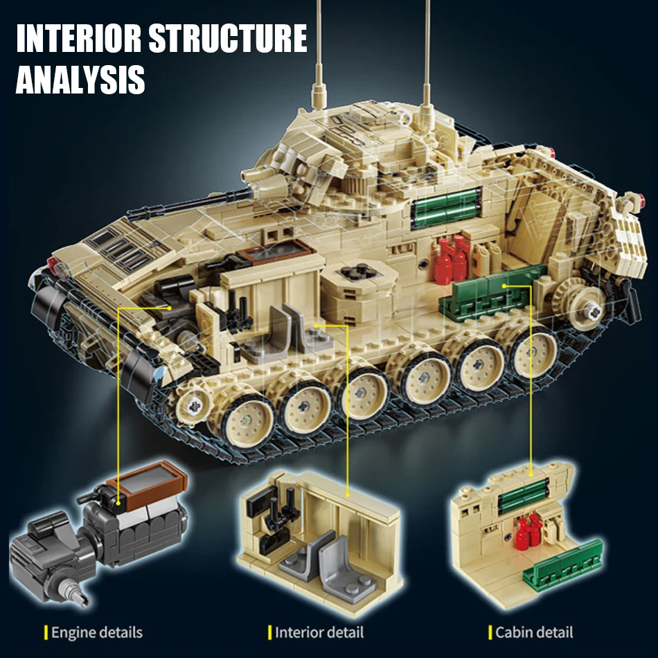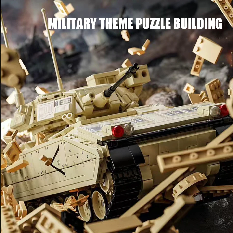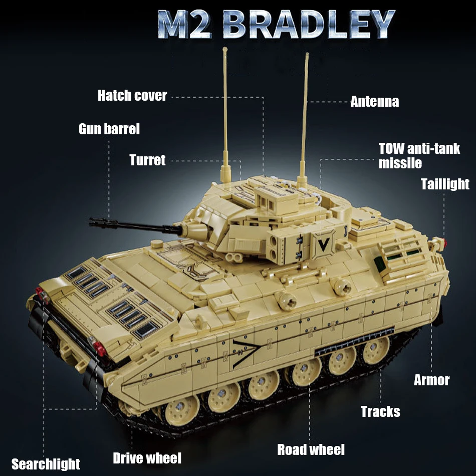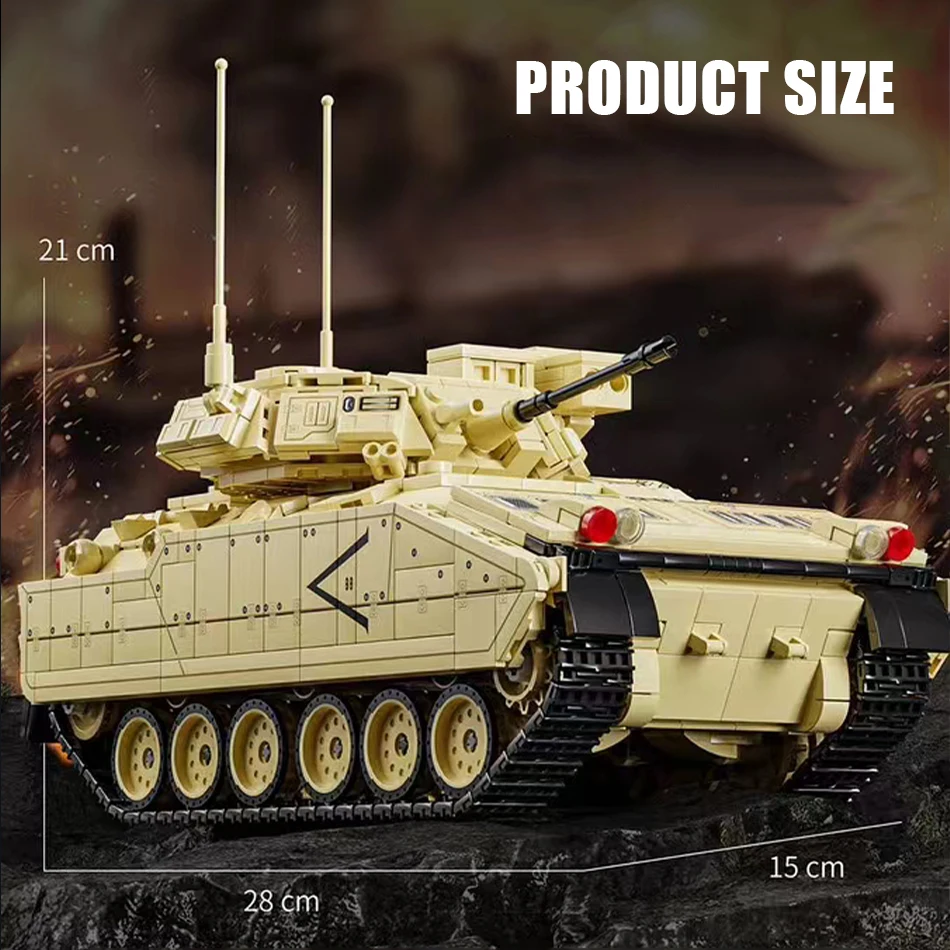 Immerse yourself in the detailed world of military machinery with this 1,862-piece set of realistic M2 Bradley Fighting Vehicle building blocks. Crafted from eco-friendly ABS plastic, these beige-colored, self-locking bricks feature angular surfaces, a flat-topped turret with side details and a cylindrical main gun barrel, vertical antenna-like structures, and detailed track wheels in black and beige. Designed for ages 6 and above, the set offers compatibility with major brands, allowing for creative expansion. Assembly is guided by included instructions, and the unboxed, uncolored design makes it a perfect gift for enthusiasts and collectors alike, bringing the rugged, militaristic aesthetic straight to your collection.