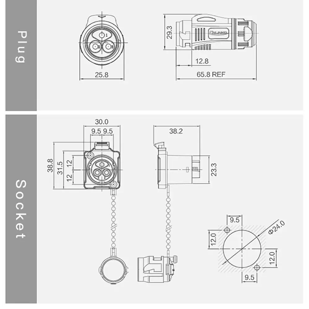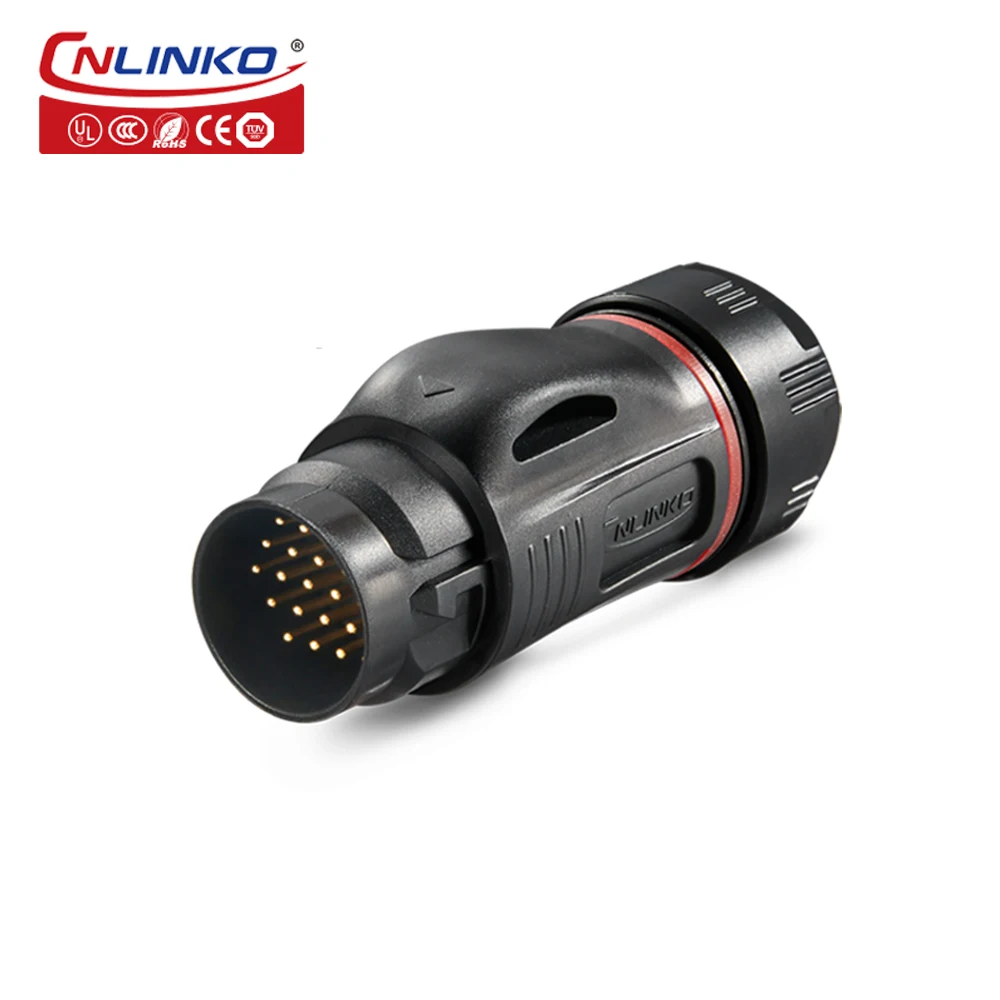 - Rated for 500V AC and capable of carrying currents up to 25A for 2–4 pin models, 10A for 10–12 pin, and 5A for 19–24 pin configurations, providing versatility for power and signal connections.