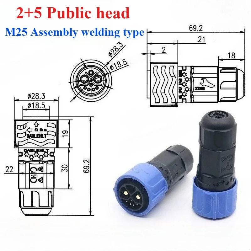 Experience the reliability of this this M25 series 2+1+5 battery connector, designed specifically for electric bicycles and scooters. Its sleek, industrial aesthetic features cylindrical shapes with textured surfaces, highlighting a bold contrast of deep black and vibrant blue. The blue protective covers and insulating shells provide a visual pop while ensuring durability and safety in demanding environments. The black ribbed grips offer tactile control, making installation and connection straightforward. Its modern design combines functionality with sophistication, allowing you to trust this component for long-lasting performance. Whether upgrading your current setup or building new, this connector offers seamless compatibility and peace of mind, blending aesthetics with high technical standards.