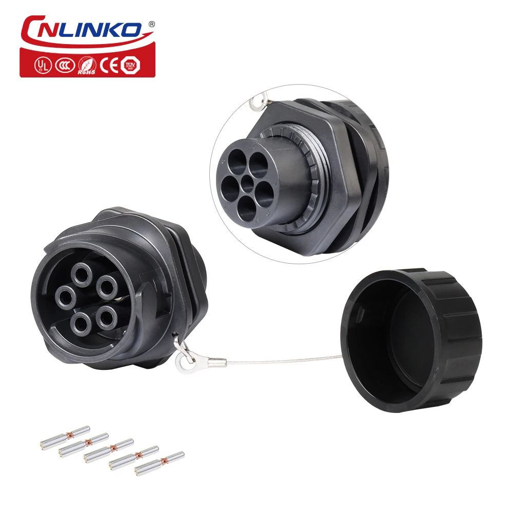 - Supports configurations with 2, 3, and 5 pins, accommodating various power needs for industrial setups and outdoor applications.