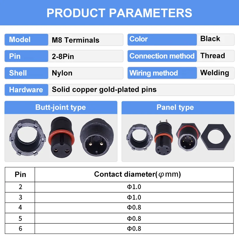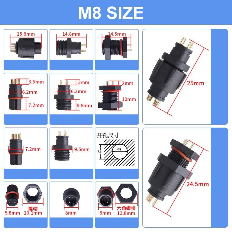 - Compatible with a wide range of industrial and automation equipment requiring waterproof, durable connection solutions with M8 mounting standards.