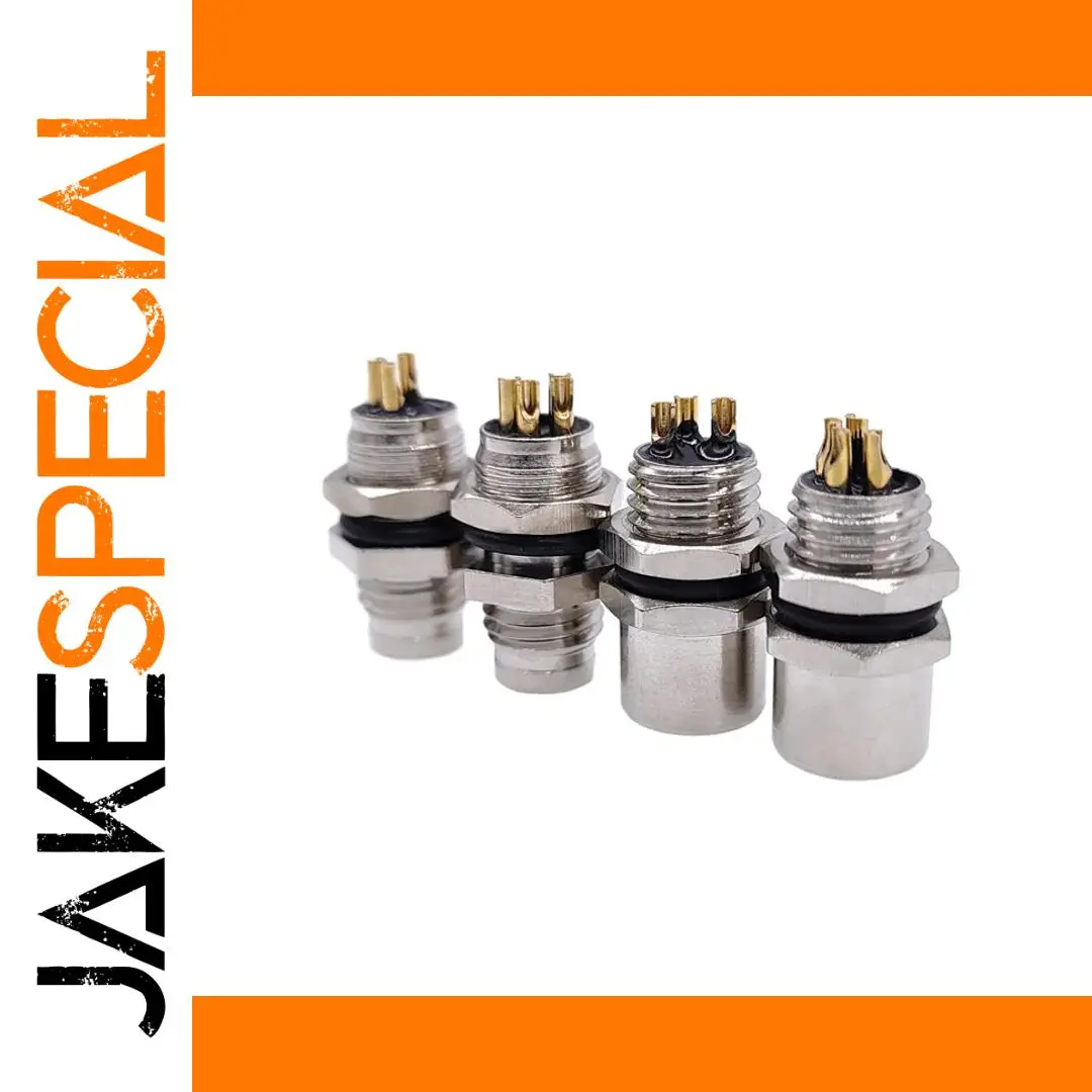 This durable M8 panel back mount sensor connector features a flange socket with threaded coupling, available in male and female configurations with 3 or 4 pins. Designed to operate at 24V, it offers waterproof, screw-threaded, straight or angled options, and supports 4, 5, or 8-pin configurations along with shielded metal signal connections. Compatible with 2-meter PVC cables, these connectors boast a sleek metallic finish with black sealing rings for optimal waterproofing and corrosion resistance. Their high-quality stainless steel construction, characterized by polished surfaces and hexagonal nuts, ensures durability and a professional, industrial aesthetic. Ideal for reliable, secure signal transmission in sensor and automation applications.
