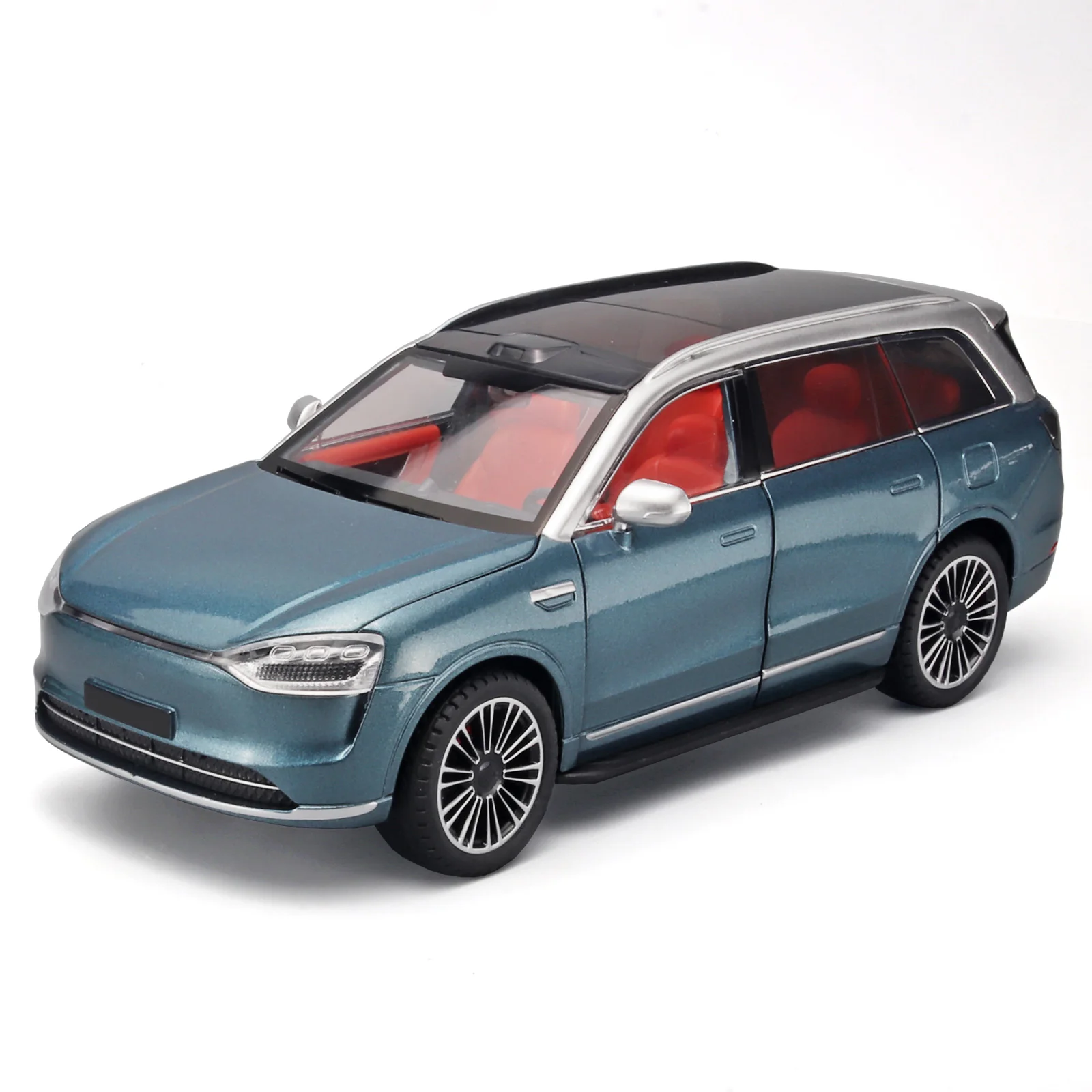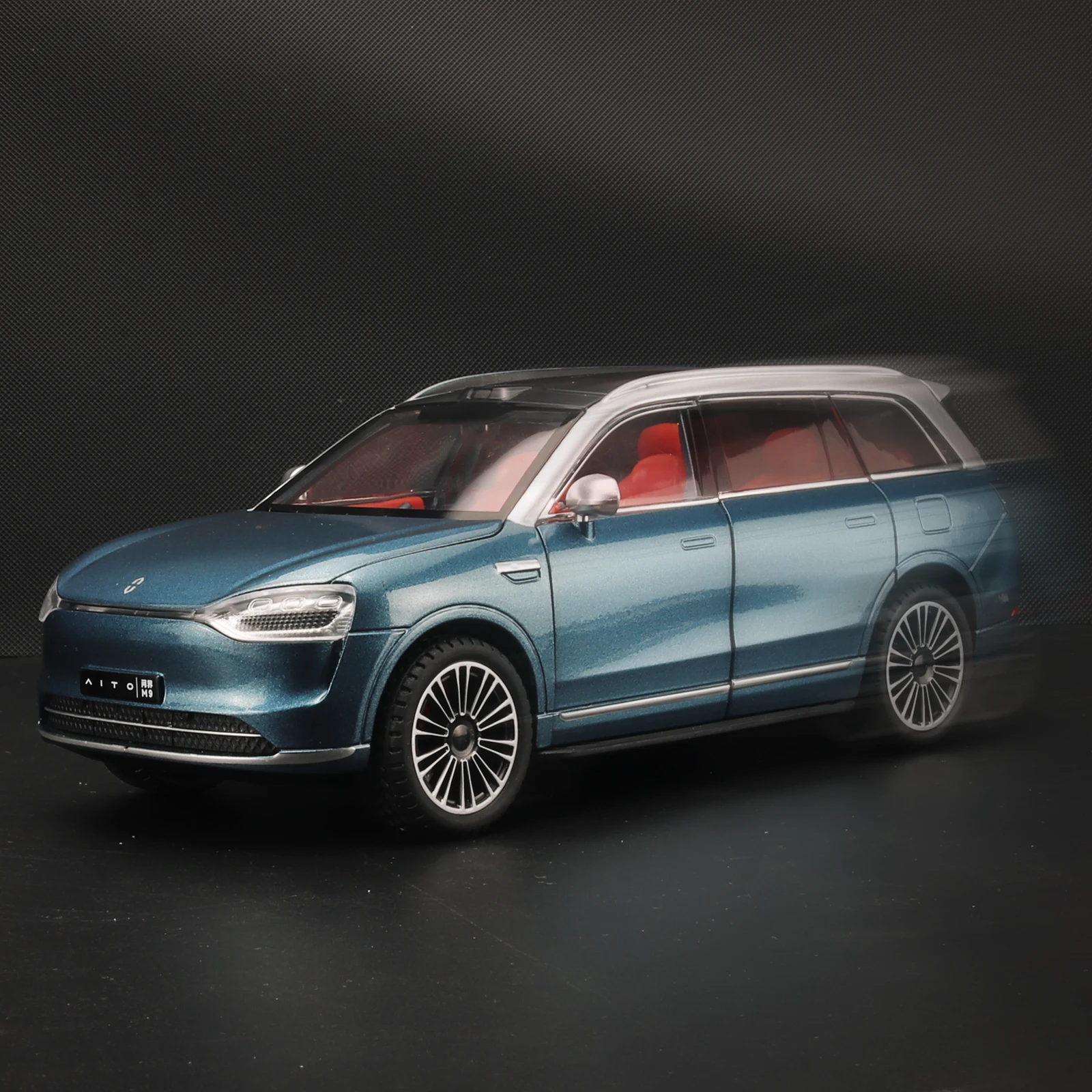 Imagine enhancing your dashboard with this stunning M9 Alloy Model Car, a statement piece designed to elevate your interior decor. This model features a striking metallic blue body with a glossy finish that reflects light beautifully, paired with sleek silver trim accents that enhance its modern appeal. With realistic multi-spoke wheels and a vibrant red interior visible through clear, well-fitted windows, every detail of this car exudes craftsmanship. Plus, the stylish black roof with a recessed sunroof makes it a true standout. Weighing in at 0.66 kg and crafted from durable zinc alloy, this decorative car is both eye-catching and built to last.