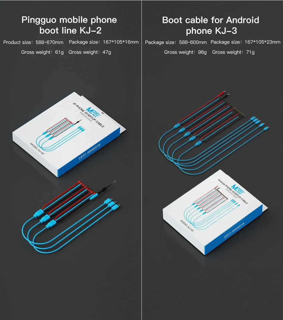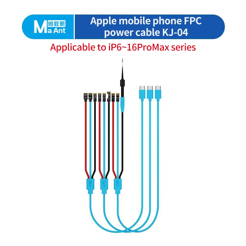Experience reliable power testing with this MaAnt KJ-04 extension cable, designed for precision and durability. Its slim, elongated design features black and red insulation for clear identification and enhanced durability. The cable's flexible structure allows easy manipulation during testing, ensuring stability and safe connections. The blue protective sleeve at the connector end offers added flexibility and protection, making testing smoother and safer. Compatible with iPhone 6 to iPhone 14 Pro Max and over 99% of Android devices, this cable makes troubleshooting and repairing power issues straightforward. Its modern, professional aesthetic combines technical expertise with vibrant color accents, creating an essential tool for technicians and enthusiasts alike.