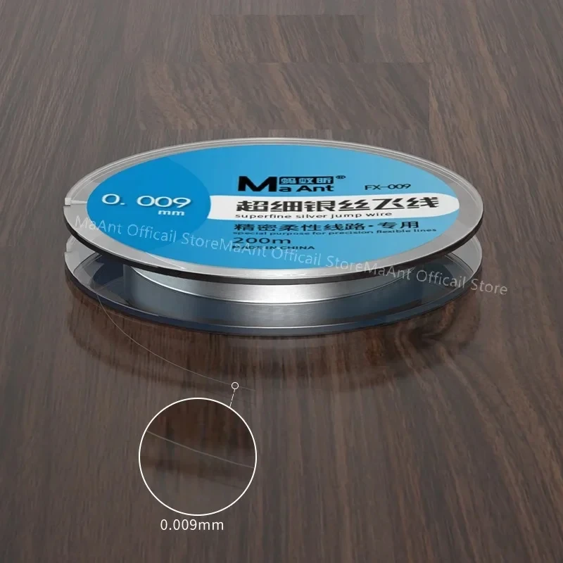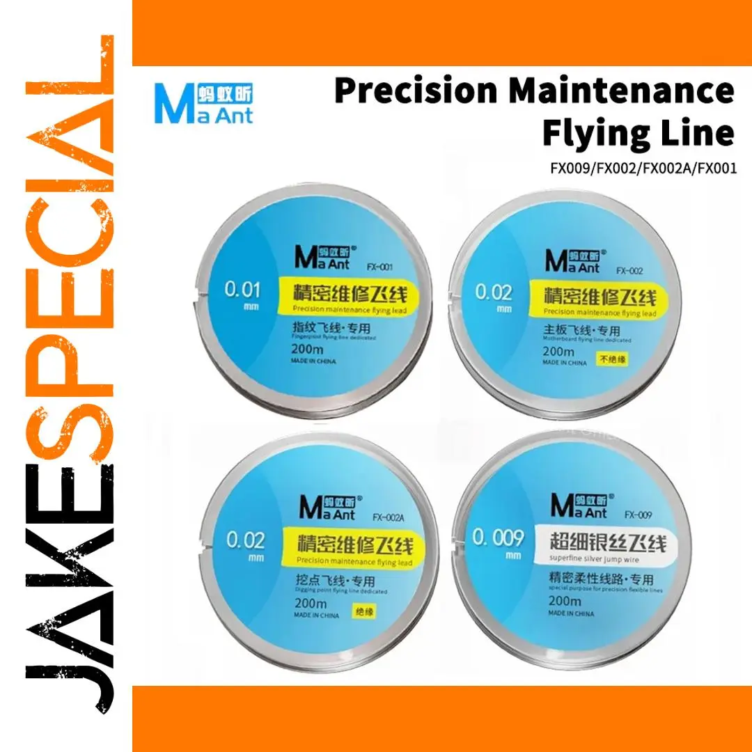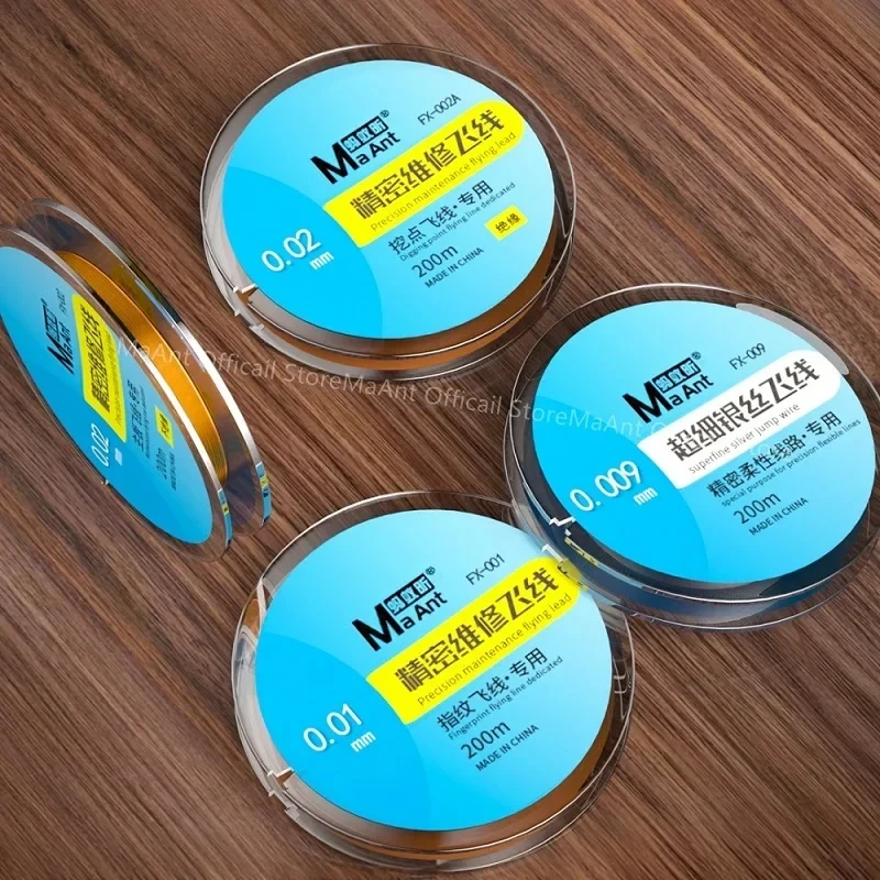 Experience unparalleled precision with this MaAnt set of flying lead wires, designed for intricate mobile phone motherboard repairs. These spools feature finely crafted, ultra-thin copper wires available in three models—FX-001 (0.01mm), FX-002 (0.02mm), FX-002A (0.02mm), and FX-009 (0.009mm)—each measuring 200 meters in length. Known for its high durability and superior conductivity, this product is ideal for delicate electronic work, offering excellent anti-interference and minimal inductance. The professional labeling and sleek circular spools provide an organized, reliable solution that blends quality with practicality, making your repair tasks smoother and more efficient. Whether you're a repair specialist or an enthusiast, this set adds value and precision to your toolkit.