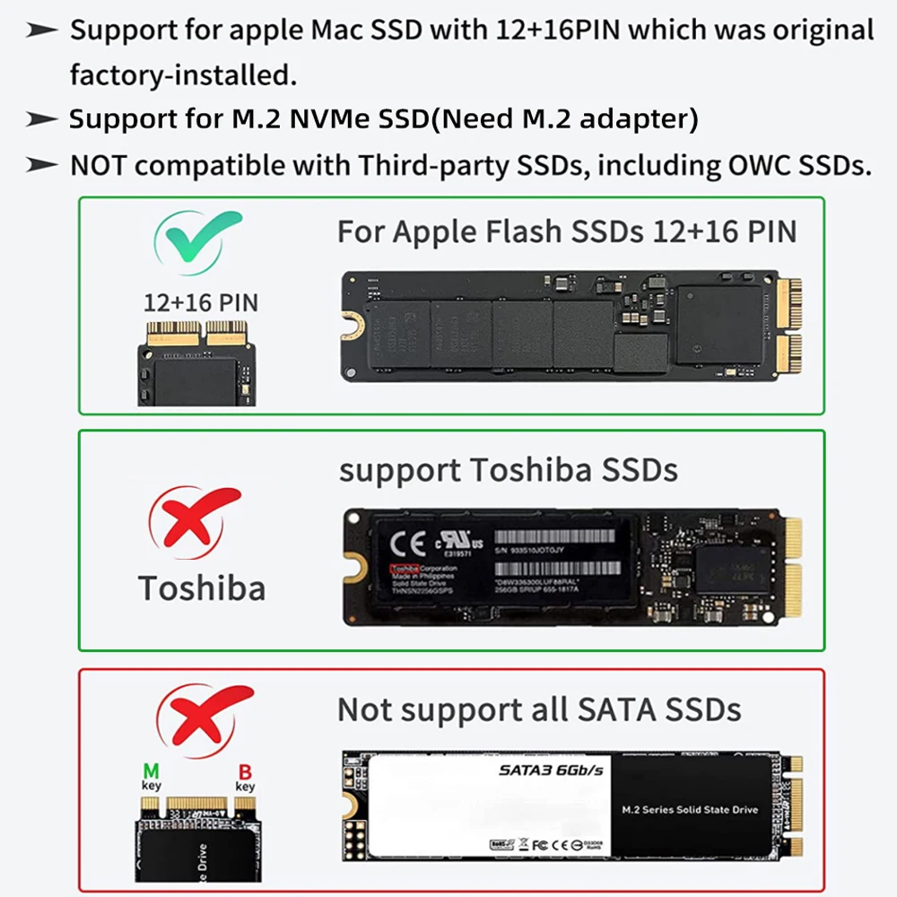 - Supports MacBook Air and Pro Retina models from 2013 to 2017, accommodating drives up to 4TB (SSD not included) for versatile storage options on your device.