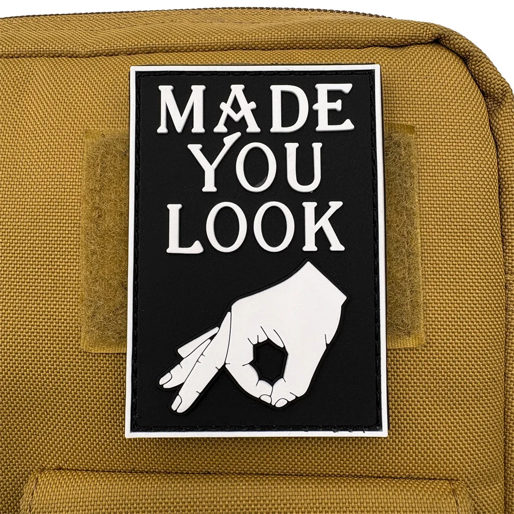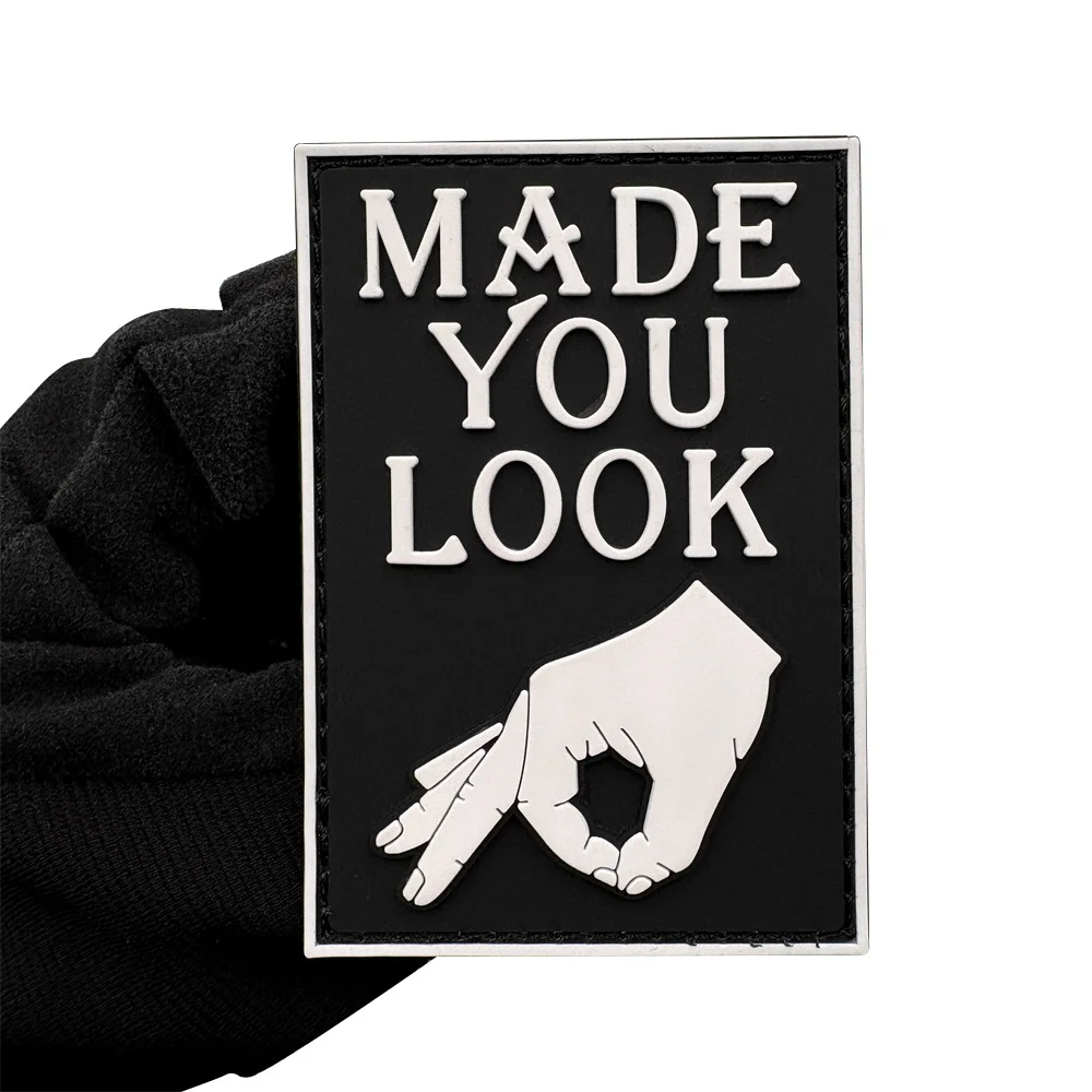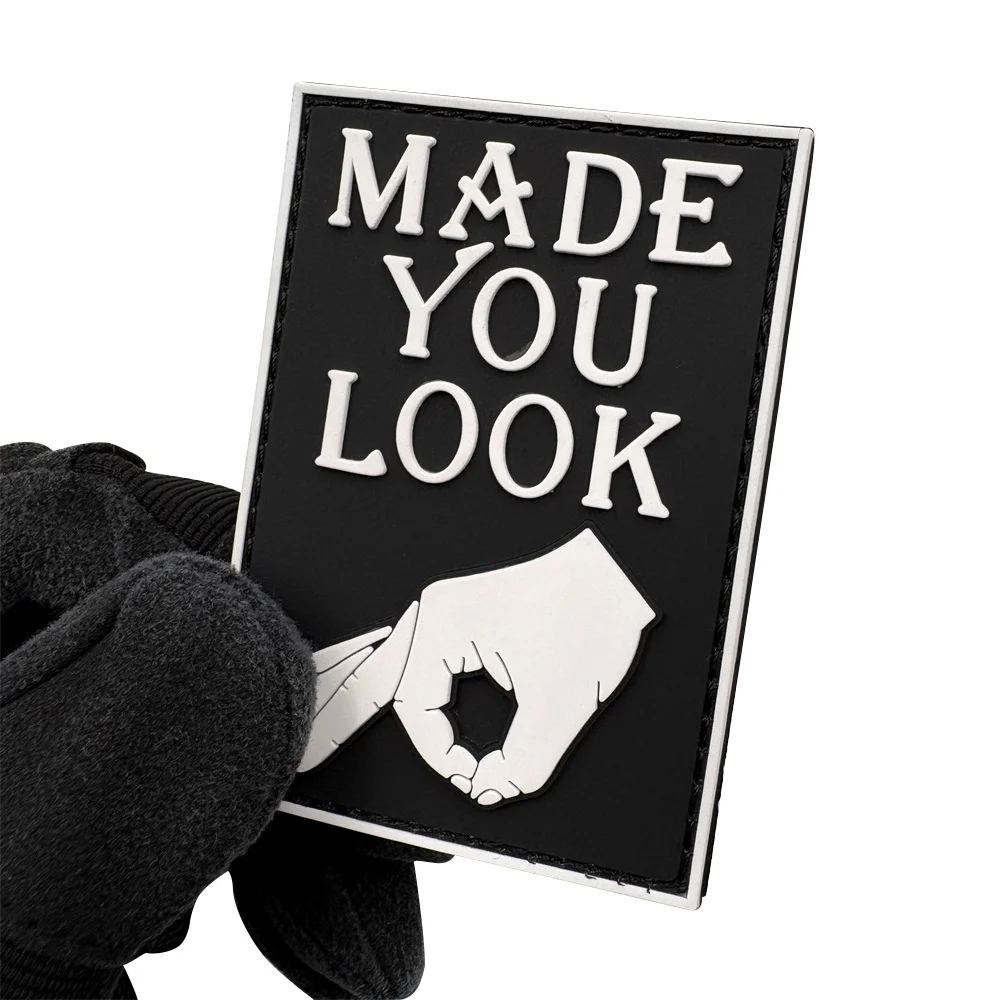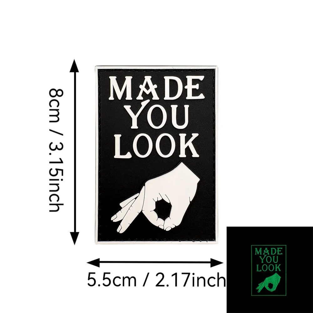 Elevate your style with this versatile PVC soft rubber armband, measuring 2.17″ by 3.15″, featuring a 3D embossed design in eco-friendly materials. Its sleek, minimalist aesthetic presents a bold “MADE YOU LOOK” message with a hand illustration, available in antique copper and antique brass finishes. The hook and loop backing allows quick attachment to jackets, backpacks, hats, helmets, or military vests, making it perfect for DIY customization or rapid repairs. Suitable for both men and women, this durable patch can be sewn or adhered for extra security, adding a modern, graphic touch to any apparel or gear.
