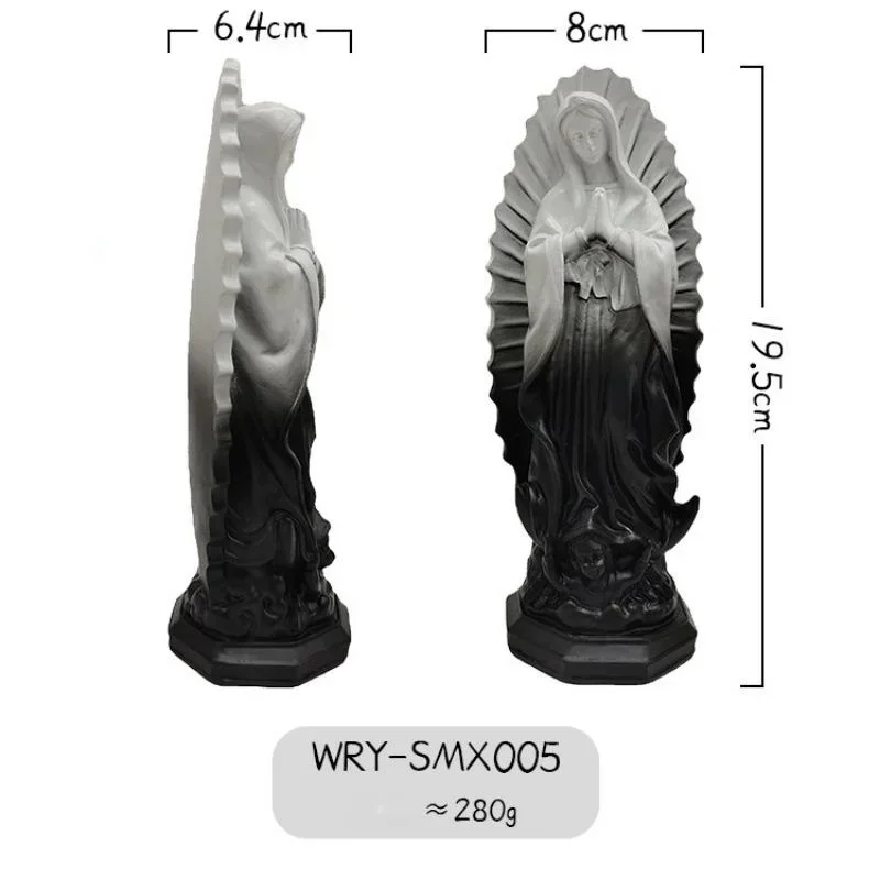 Bring a peaceful and spiritual ambiance into your space with this stunning collection of Madonna resin figurines. Crafted with exquisite resin craftsmanship, each piece showcases a different vibrant color—white, grey, yellow, gold, black, and silver—adding variety and richness to your decor. The figurines depict Madonna in a prayerful pose, draped in flowing robes, with serene or gentle facial expressions that evoke calmness and reverence. The combination of matte and glossy finishes highlights their detailed craftsmanship, making them ideal for home decor, church settings, or as unique shooting props. These durable resin statues are designed to bring a touch of elegance and spiritual sentiment to any environment.
