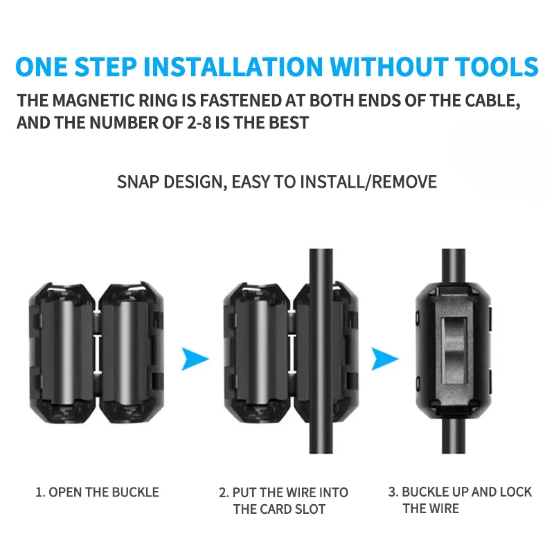 Step up your electronics performance with these sleek, efficient magnetic rings. Installing them over cables is quick and easy, making a noticeable difference in reducing noise and interference. Imagine the convenience of knowing your devices are protected against electromagnetic disturbances, ensuring optimal operation and longevity. Perfect for any professional or enthusiast looking to enhance their setup, these rings are a practical, discreet addition. Take action now—your devices deserve the best protection against interference, and these magnetic rings deliver just that with quality, style, and functionality.