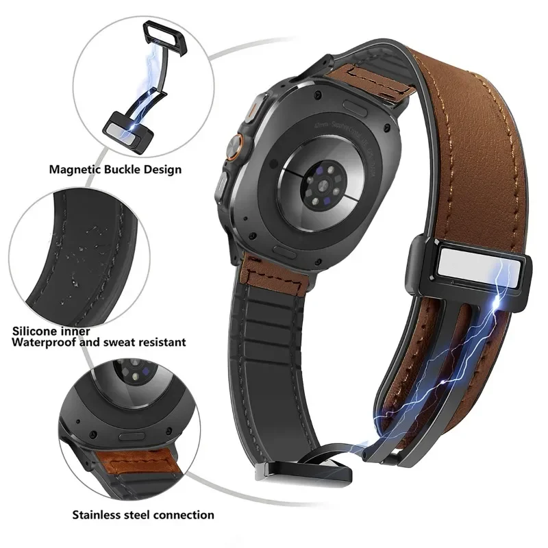 Elegant Magnetic Leather and Silicone Strap for Galaxy Watch 7 Ultra