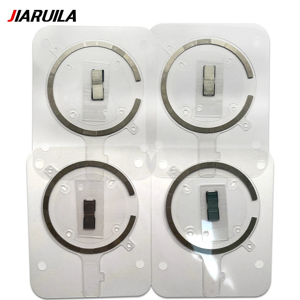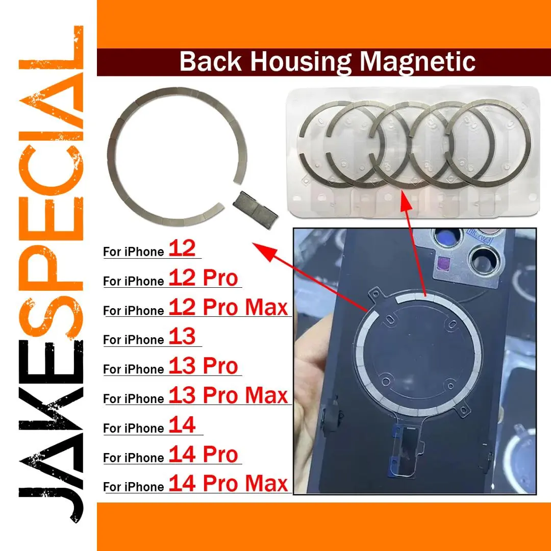 Enhance your iPhone’s wireless charging and sensor performance with this set of two high-quality magnetic metal rings, compatible with iPhone 12, 12 mini, 12 Pro, 12 Pro Max, 13, 13 mini, 13 Pro, 13 Pro Max, 14, 14 Plus, 14 Pro, and 14 Pro Max models. Crafted from durable steel with a sleek, polished finish, these precision-engineered rings feature evenly segmented sections around their circumference for a modern, technical look. Designed specifically for back housing glass, they facilitate magnet repairs and sensor functionality for proximity and ambient light sensors. Each ring is individually tested to guarantee suitability, durability, and seamless integration into your device.