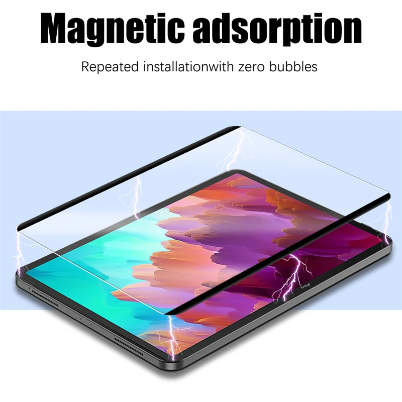 Experience the ultimate protection and sleek design of this this magnetic paper feel film, specially crafted for Lenovo tablets like Xiaoxin Pad series. The transparent PET material provides a clear, glass-like finish that enhances your screen, while the subtle black borders ensure a precise fit. Accentuated with visual cues of electric sparks at the corners, it highlights its magnetic and high-tech features. Easy to install and remove, this film offers scratch-proof durability designed to withstand daily use. It seamlessly integrates with your device, allowing stylus interaction for smooth writing and drawing. Whether you’re working, gaming, or creating, this film ensures your tablet maintains pristine clarity and a modern aesthetic.