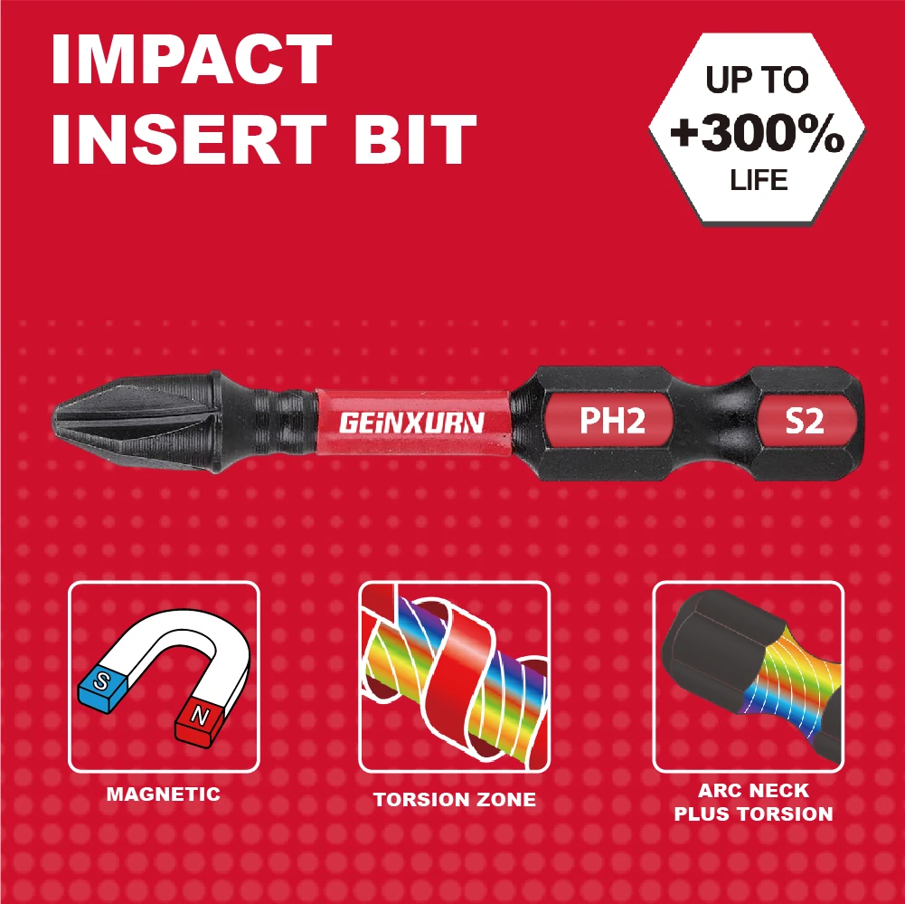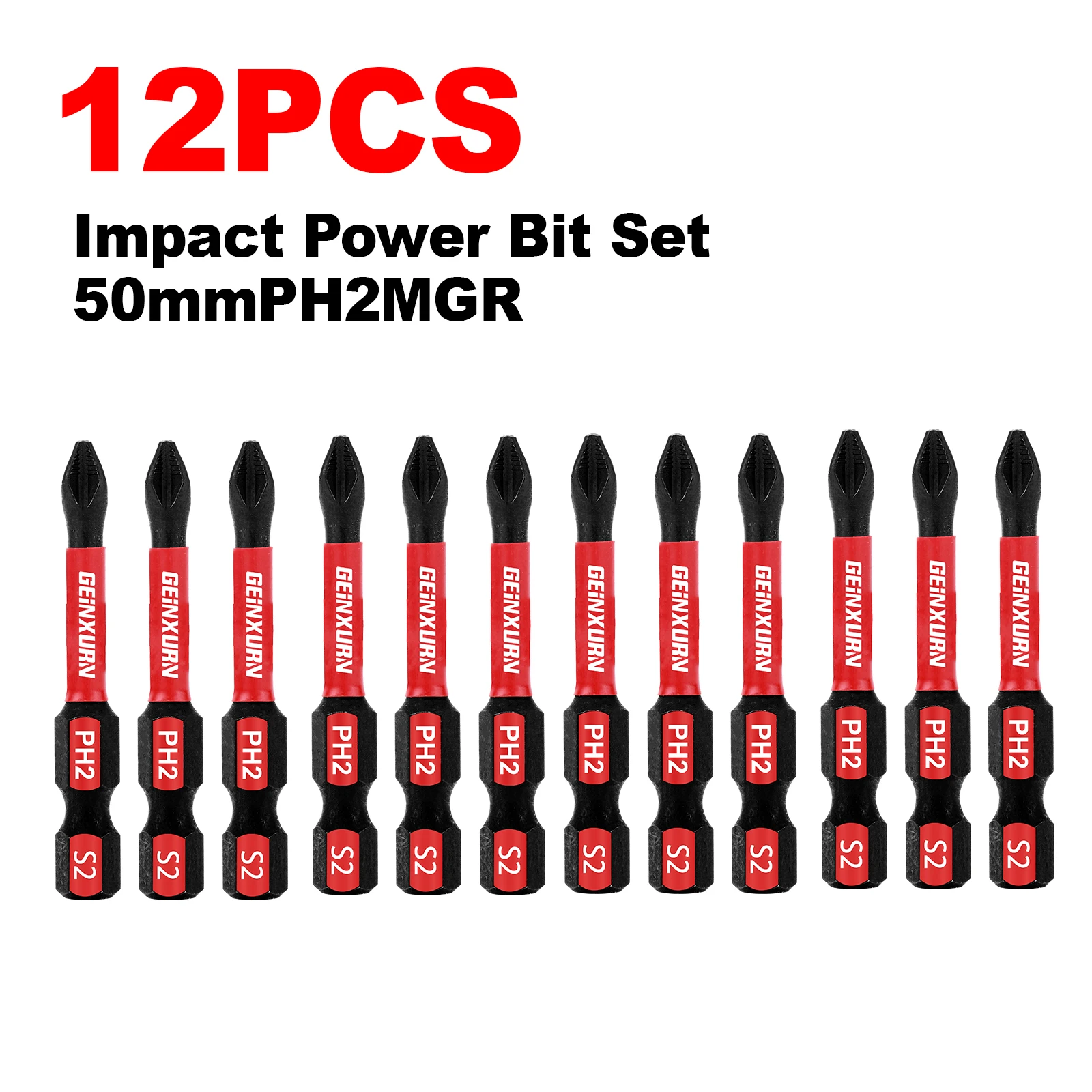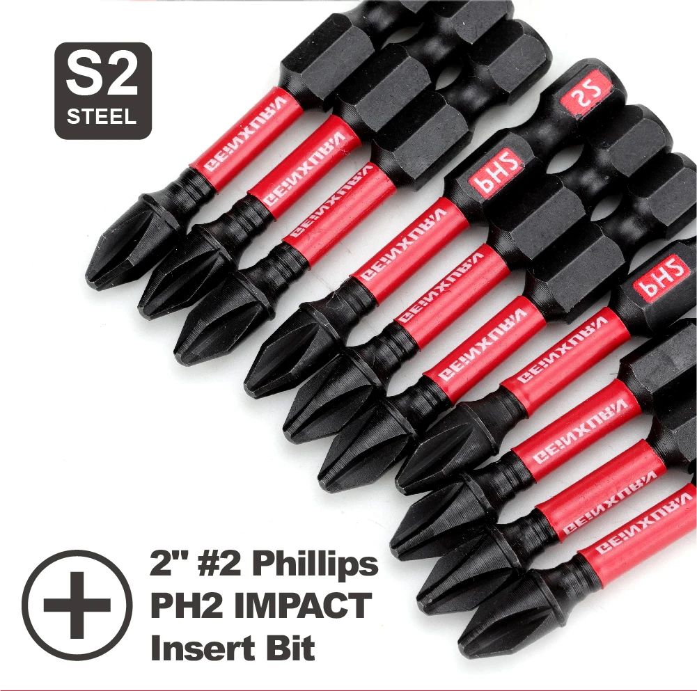 This magnetic screwdriver bits set includes 20-29 pieces of Phillips #2 (PH2) and Pozidriv bits crafted from high-quality S2 alloy steel, ensuring high hardness, toughness, and impact resistance. The bits feature a precision-engineered hex shank compatible with impactdrivers and a dismountable head for versatile use. They are designed with magnetic tips that securely hold screws, preventing slipping or stripping, making them ideal for industrial applications. Available in sets of 6, 12, or 20 pieces, these durable, professional-grade bits provide reliable performance for demanding projects, offering a sleek black tip design with a bright red hex shank and subtle textured grip for enhanced control.