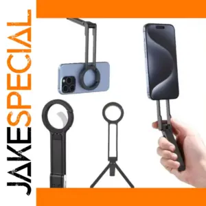 Experience ultimate convenience with this stylish black magnetic phone tripod. Its compact, lightweight design allows you to switch effortlessly between a desk mount and a selfie handle. Featuring a dual-side phone stand, it securely holds iPhone 14-17 Pro Max models, offering stability whether you’re taking selfies, recording videos, or making video calls. The magnetic attachment ensures quick, tool-free setup and detachment. Its modern minimalist aesthetic, with smooth black surfaces and polished magnetic components, complements any workspace or camera setup. The adjustable tripod head provides flexibility for various angles, making your content creation seamless. Built for versatility, this tripod enhances your smartphone experience while maintaining an elegant and functional appearance. It’s perfect for capturing life’s moments with confidence and style.