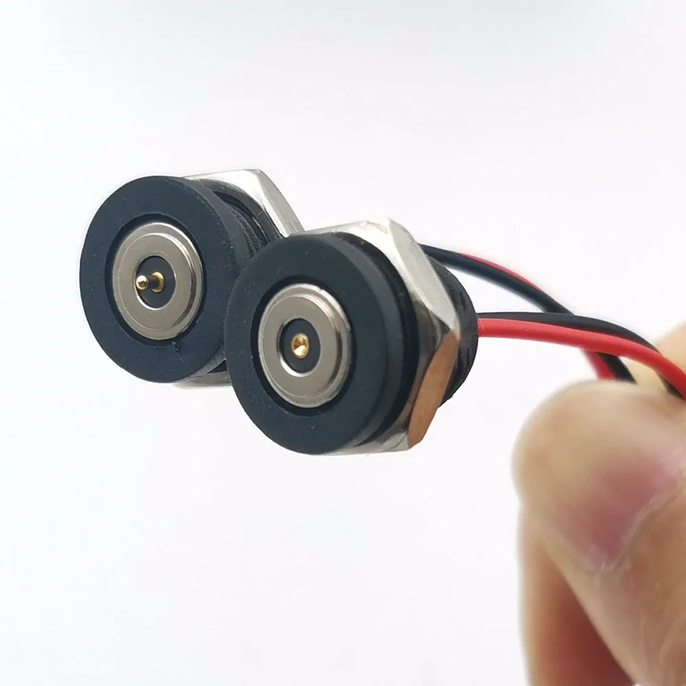 Enhance your electronic projects with this set of magnetic threaded connector sockets. Designed with a sleek, industrial aesthetic, these connectors feature a metallic hexagonal outer shell and a polished circular contact surface with gold-plated pins for superior conductivity. The black rubber or silicone ring around the contact ensures a reliable seal, protecting your connections from dust and moisture. With magnetic suction contact points, these connectors provide a secure, detachable link ideal for DIY, repair, or professional applications. Their versatile voltage compatibility—ranging from 5V to 30V—and 3A current capacity make them suitable for a wide variety of power supply needs. Easy to install and use, they ensure a clean, professional look while maintaining strong, secure connections. They are perfect for creating custom power solutions or upgrading existing systems.