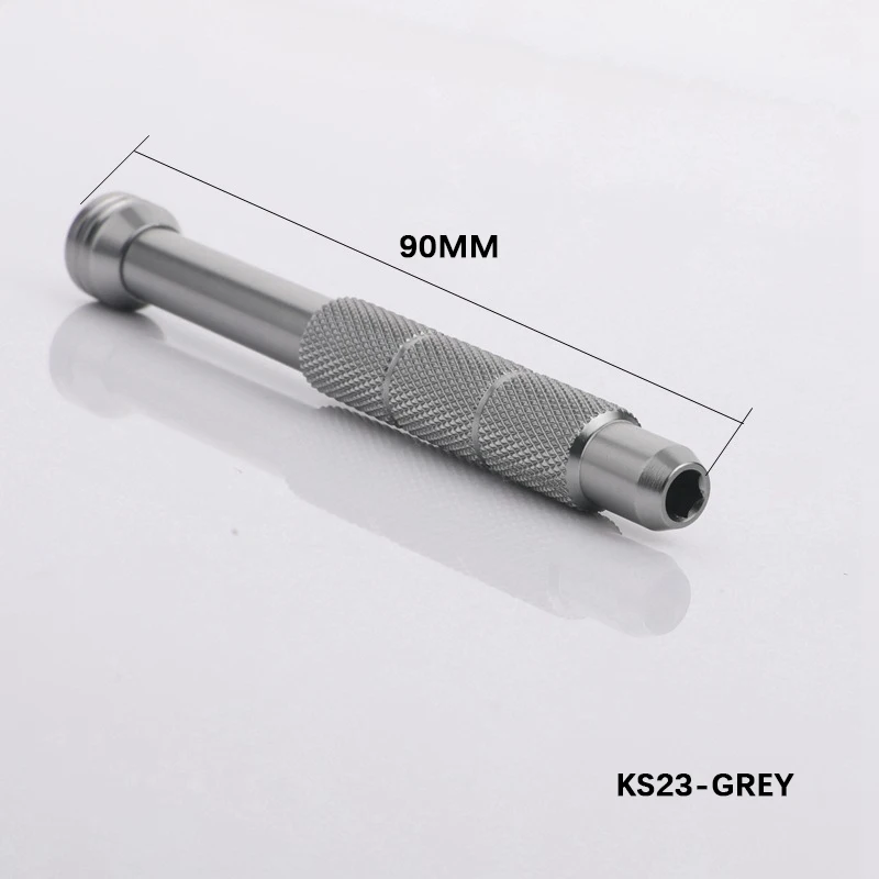 Enhance your precision toolkit with this magnetic screwdriver bit holder featuring a 4mm hex shank, crafted from durable Zinc Alloy Steel / Tool Steel. Its multifunctional design includes an ergonomic handle available in striking colors such as gold, grey, dark grey, silvery, and red, each with a knurled grip section for secure handling. The magnetic handle securely holds 4mm hex bits, making small screw-driving tasks effortless and precise. Suitable for mini screwdrivers, this single-piece holder combines robustness and style, ideal for detailed work requiring reliability and ease of use. Compatible with various small screw-driving applications, it offers both functionality and visual appeal.