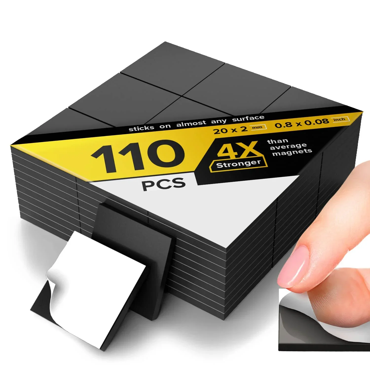 Enhance your organization and DIY projects with this set of 110 high-quality self-adhesive magnetic squares, each measuring 20mm by 2mm and featuring a strong 675 Gauss magnetic strength. Made from durable anisotropic magnet material, these flexible, peel-and-stick magnetic sheets are easy to cut and apply to surfaces like plastic, metal, concrete, and tiles without leaving marks. The sleek, modern design includes a textured yellow diagonal stripe on a black background, adding a stylish touch to your workspace or craft area. Ideal for educational, household, office, or creative use, these magnets are a reliable, versatile solution for countless applications.
