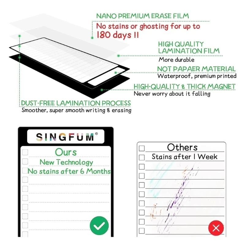 - Compatible with standard dry erase markers, allowing for vivid writing, quick erasing, and easy updating of your notes and lists.