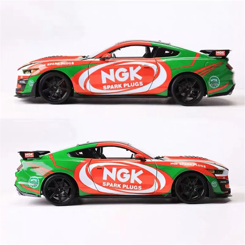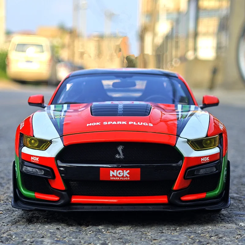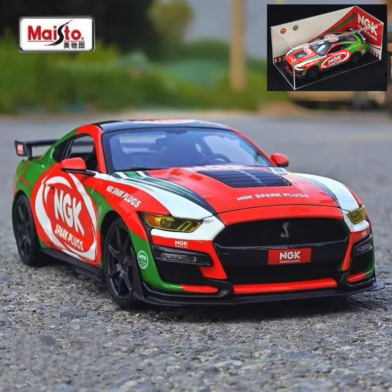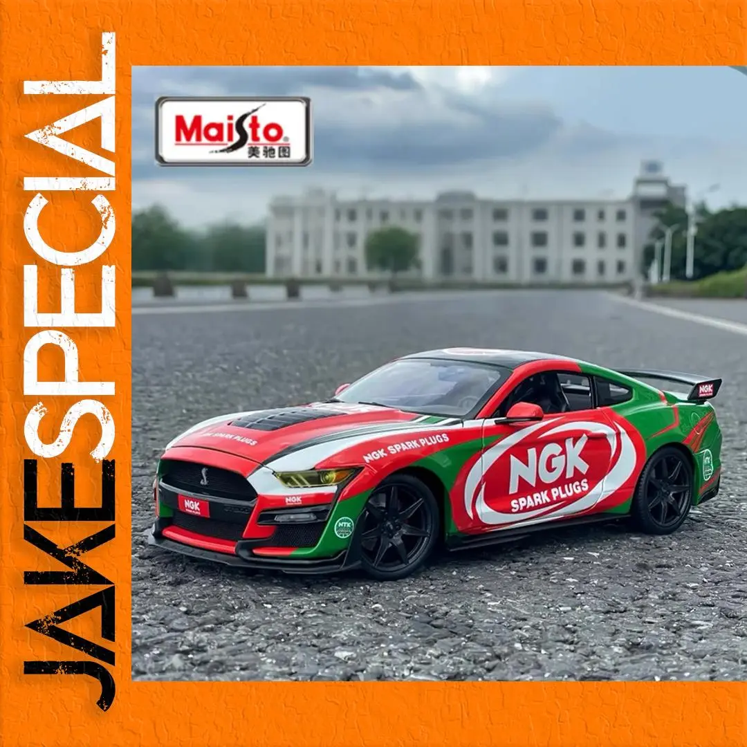 Indulge in the exhilarating world of automotive collectibles with this Maisto Track Version 1/18 Ford Mustang Shelby GT500 Alloy Sports Car Model. Designed with vibrant aesthetics, it boasts a dominant red body complemented by striking green accents. The “NGK SPARK PLUGS” branding showcases this model's racing spirit, making it a perfect addition for enthusiasts and collectors alike. Meticulously crafted from durable alloy and plastic, this diecast model captures the sleek contours and aggressive stance of the iconic Mustang. Without any electrical components, it's ideally suited for display, allowing you to immerse in its detailed charm daily.