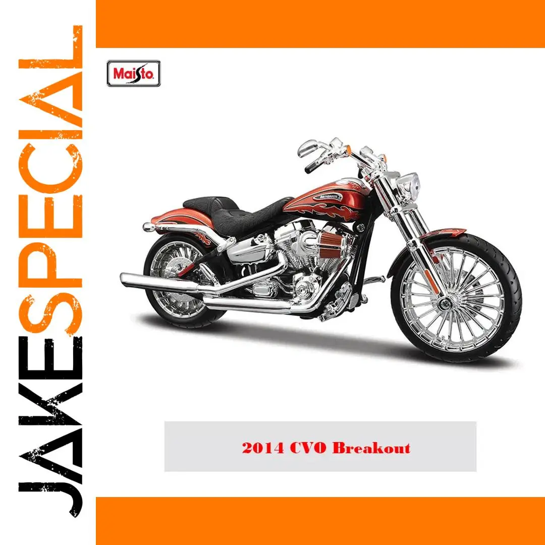 Feel the thrill of owning a piece of motorcycle history with the Maisto 1:12 scale model of the 2014 CVO Breakout. This stunning die-cast model features a vibrant metallic red and orange finish adorned with bold flame graphics, capturing the essence of Harley-Davidson style. The sturdy metal frame and intricately designed chrome wheels, combined with detailed accents, reflect true craftsmanship. Whether displayed on a shelf or in a collection, this motorcycle model stands out as a testament to bike enthusiasts’ passion and admiration for the iconic brand. Imagine the pride and joy of showcasing this masterpiece in your collection.