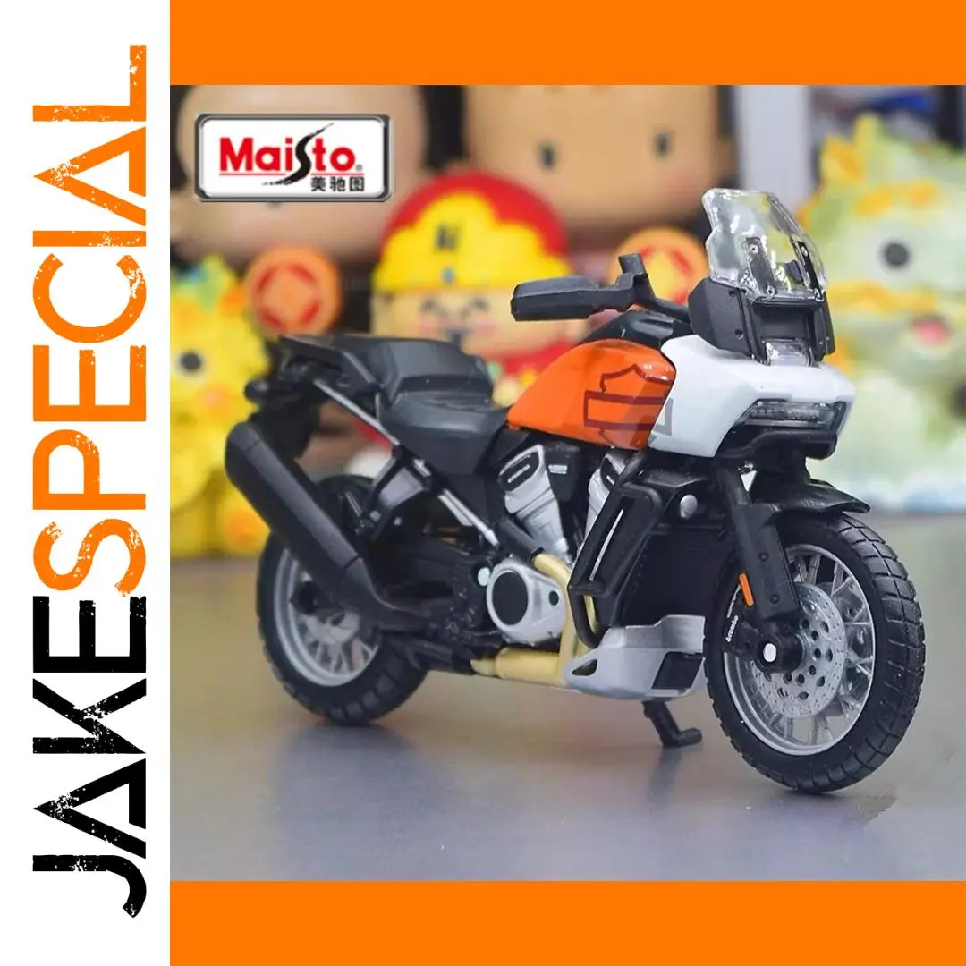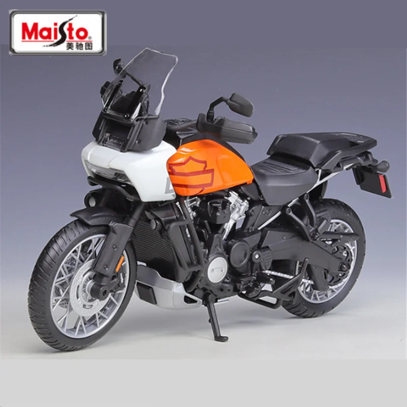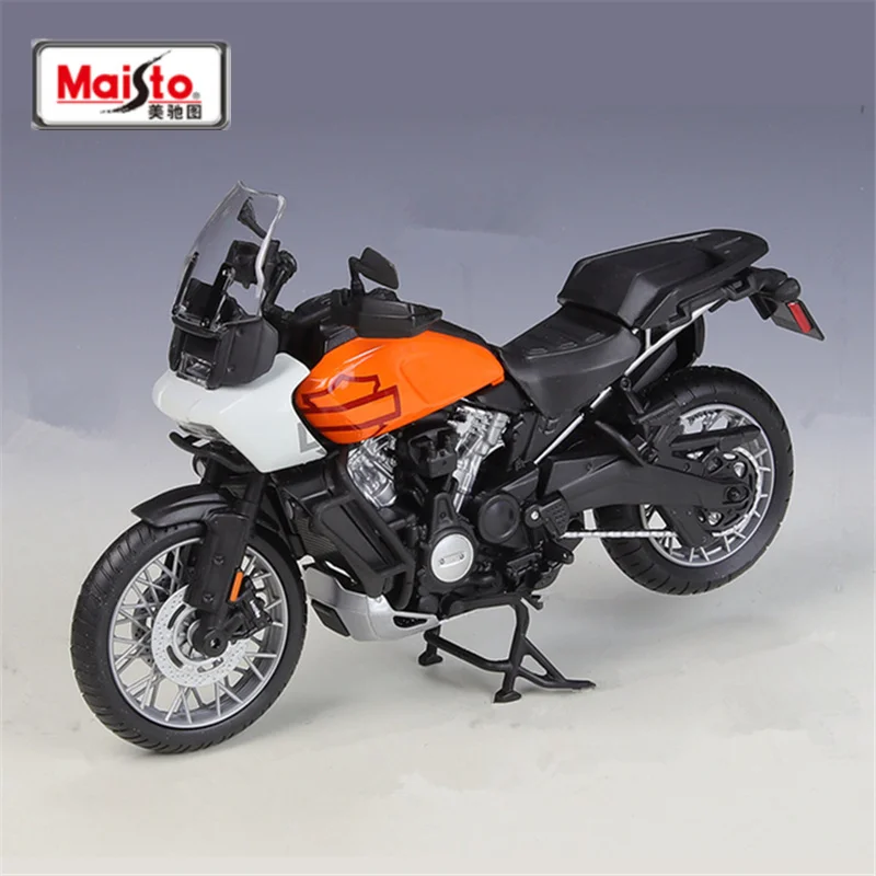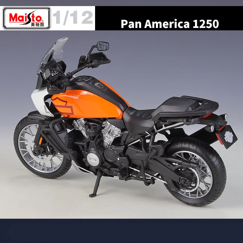 Imagine owning a stunning replica of the iconic Pan America 1250 motorcycle, crafted with exceptional attention to detail. This 1:12 scale diecast alloy model immerses you in the sleek, modern design of a street racing motorcycle. Its black body, accented with vibrant orange and white graphics, mimics the aggressive and dynamic look of the original bike. The finely detailed silver engine components, realistic rubber tires with tread patterns, and intricately sculpted fairing elevate its authenticity. Whether displayed on your shelf or used for decorative purposes, this model brings a sense of excitement and craftsmanship. High-quality materials and lifelike textures make it a captivating collectible for adult enthusiasts and collectors alike.