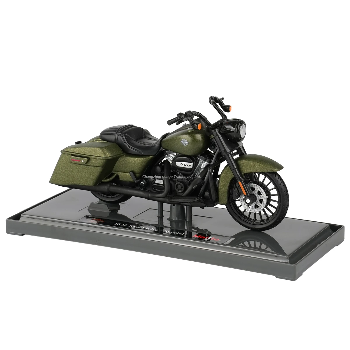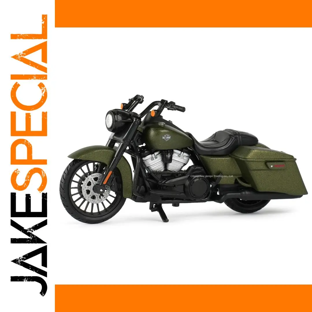 This exceptional die-cast model of the 2022 Harley-Davidson Road King Special by Maisto captures the spirit of the open road with its striking dark green metallic finish that glistens beautifully. Crafted with meticulous attention to detail, from the muscular body design to the textural realism of the wheels, this model motorcycle combines aesthetic appeal with functionality. The adjustable features like a swinging front wheel and kickstand offer interactivity, allowing you to engage with your model as a proud collector. Its classic Harley lines evoke nostalgia while making a stunning display piece.