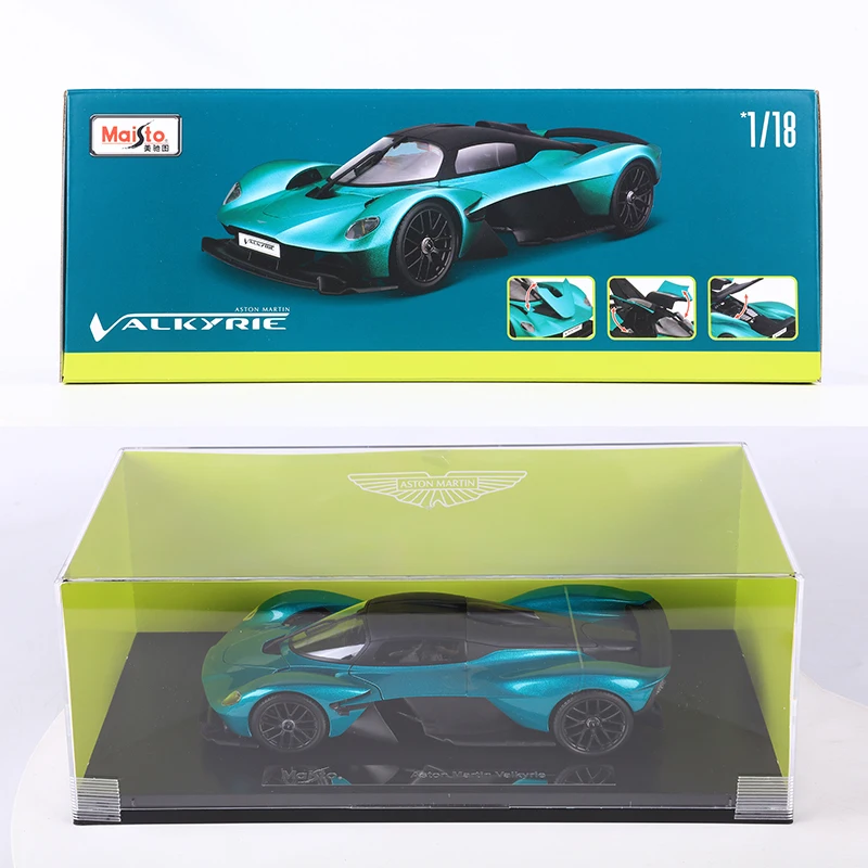 - The Maisto 1:18 scale Valkyrie model features a vibrant green and silver alloy finish, offering a realistic and striking appearance that mimics the original vehicle's high-end design.