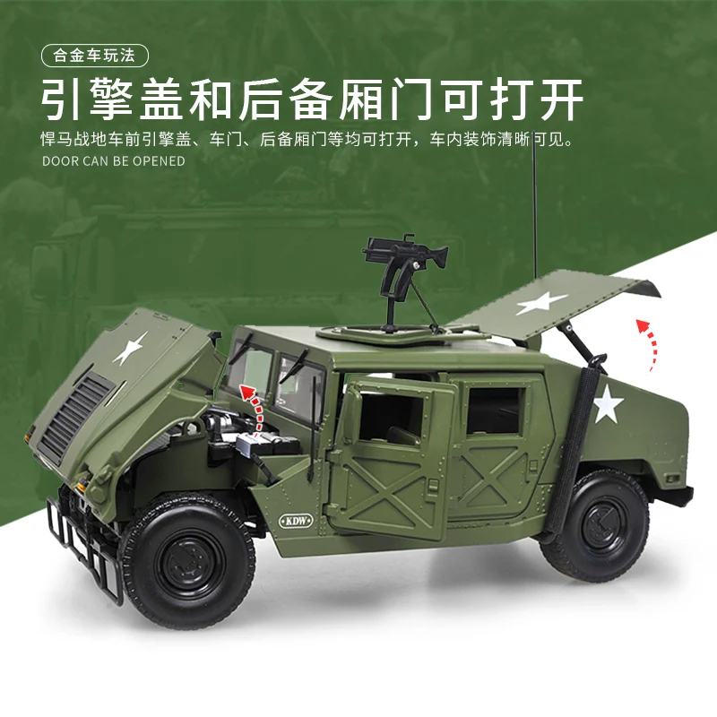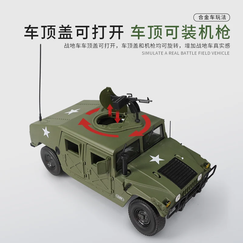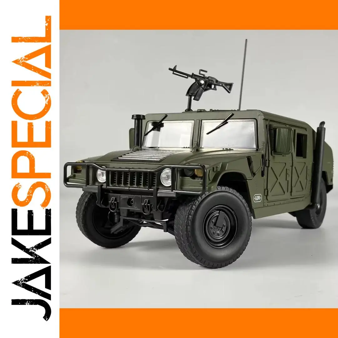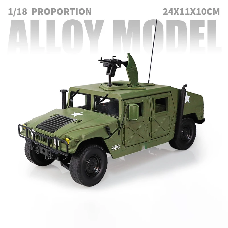 This 1:18 scale diecast model of the Hummer H1 Military is a meticulously crafted collectible, made from alloy metal and finished in a realistic olive drab green color. Designed exclusively for display, it features a rugged, boxy silhouette with detailed panel lines, armored exterior elements, and a prominent front grille that captures the vehicle’s military essence. Large tires with textured treads, black rims, and functional-tactical accessories like antennas and mounted equipment enhance its authentic, sturdy appearance. Suitable for enthusiasts and collectors aged 14 and above, this highly detailed model is perfect for showcasing a rugged military vehicle with precision craftsmanship.